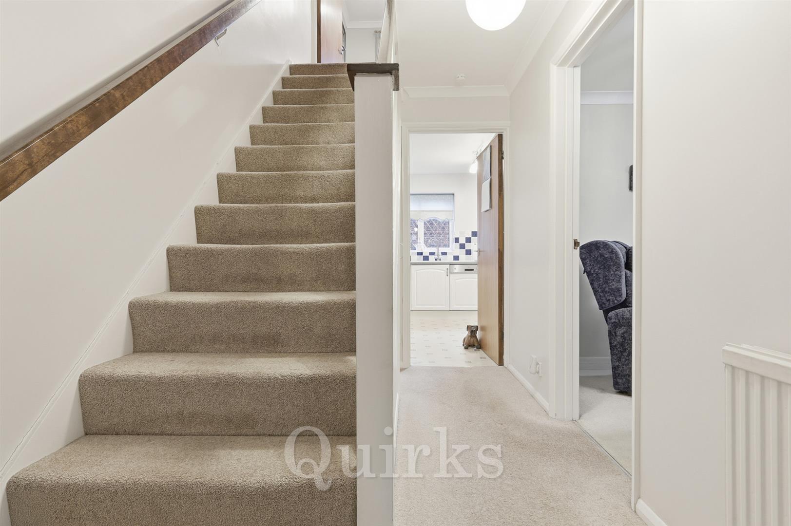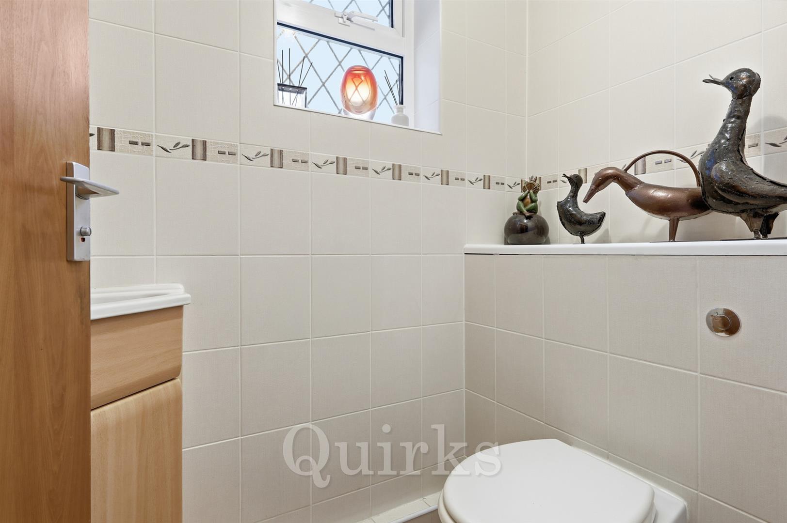 Occupying a corner plot in a quiet side turning on the popular Queens Park Development, is this well presented, four bedroom link-detached family home. The property offers extensive off road parking to the front, with a block paved driveway in addition to the garage, with electric up and over door and eaves storage space. The accommodation includes an entrance porch, fully tiled ground floor W.C, spacious hallway with built-in storage, naturally light living room with feature gas fireplace, opening to the dining room, which overlooks the secluded rear garden. The integrated kitchen includes a range of wall and base level units, cupboard housing the Vaillant gas boiler, Neff electric hob, oven, grill and dishwasher, Bosch fridge / freezer, space for washing machine, sink / drainer, serving hatch and door access to rear garden. The first floor landing has access to the loft and built-in airing cupboard housing the hot water tank. The family bathroom is an excellent size, modern and fully tiled bathroom with four piece suite, including bath with shower above. Bedroom one has a range of fitted wardrobes, dressing table and matching bedside units, the en-suite benefits from a fully tiled modern white suite. Ideally located for both commuters, with Billericay Railway Station being just a 0.7 mile walk via Lake Meadows Park and families have both Brightside and Buttsbury schools in close proximity, as well as convenience shops at The Pantiles and recently opened Aldi supermarket.