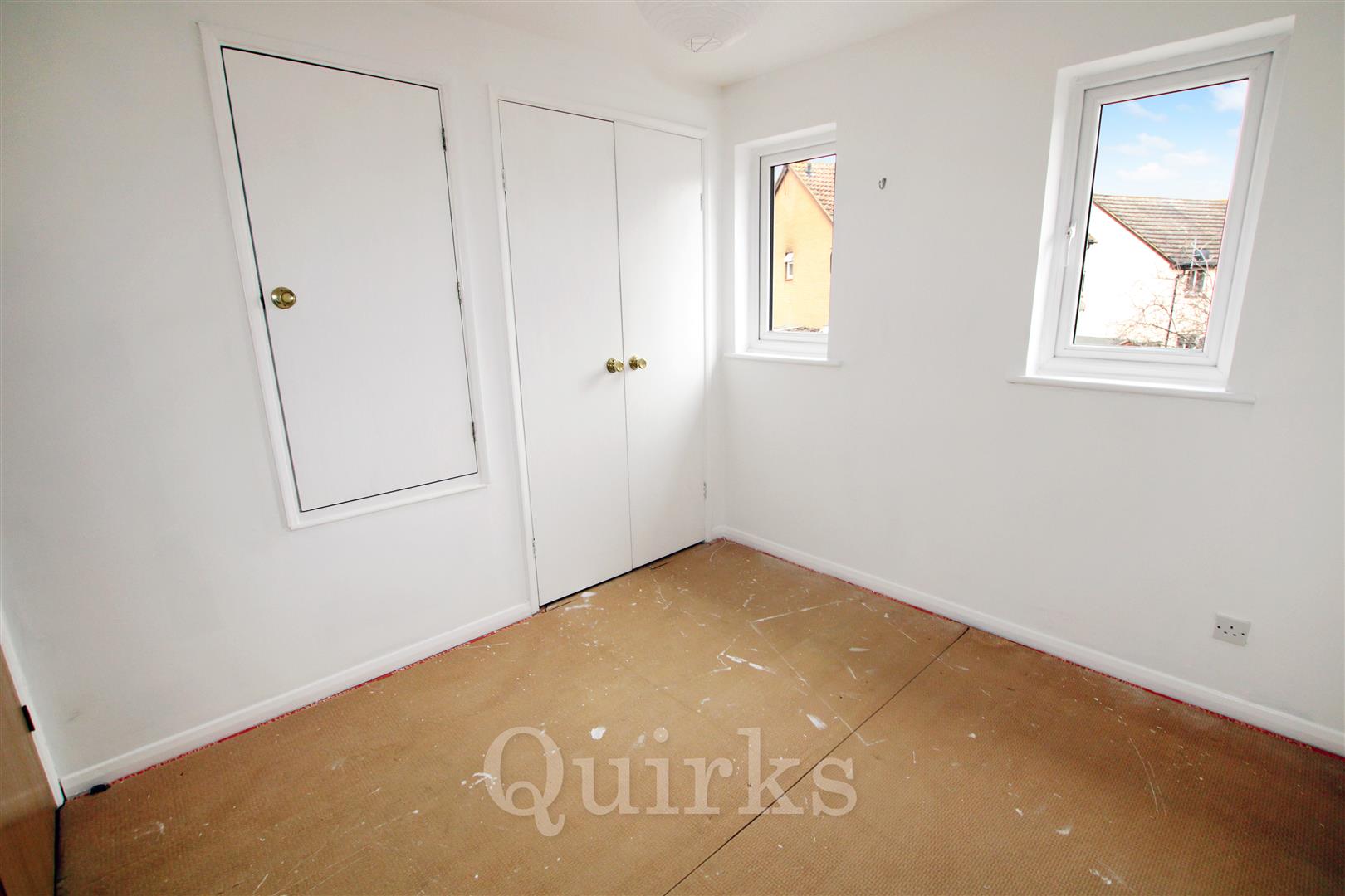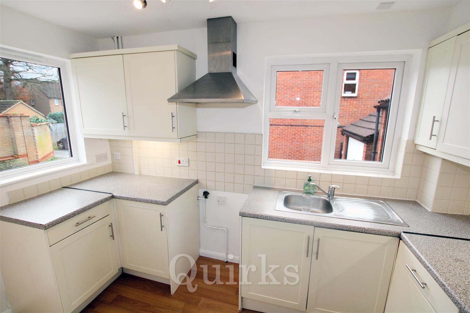 This two double bedroom semi-detached house is offered to the market with no onward chain and is located on the popular Queens Park Development. The property includes a fitted kitchen and bathroom and has been freshly redecorated throughout. The carpets have been removed, allowing a purchaser to install flooring to their own preference. Externally, the home benefits from a private driveway leading to a detached garage, providing off-road parking and useful storage. Conveniently positioned close to local schools, shops, and the train station, the property is well suited to commuters, first-time buyers, or small families.