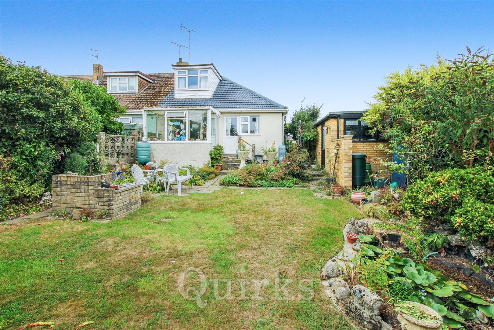 This four bedroom chalet bungalow is offered to the market for the first time since 1958, with the advantage of NO ONWARD CHAIN. This popular side turning is within close proximity of Billericay High Street, Mainline Station and award winning Quilters Primary School. This extended family home has it's own driveway, detached garage, in addition to beautifully presented front and back gardens, with established plants. Ideally suited for downsizers and families alike, the accommodation includes two bedrooms to the front aspect, central hallway, living room with feature brick built fireplace and sliding door to the double glazed conservatory. The kitchen is dual aspect with door access to the rear garden, the bathroom is located on the ground floor, with paneled bath, low level W.C, pedestal wash hand basin, there is a built-in airing cupboard for drying clothes. The first floor has two bedrooms and plenty of eaves storage spaces with several cupboards, giving potential to extend further into the loft (subject to planning consent)