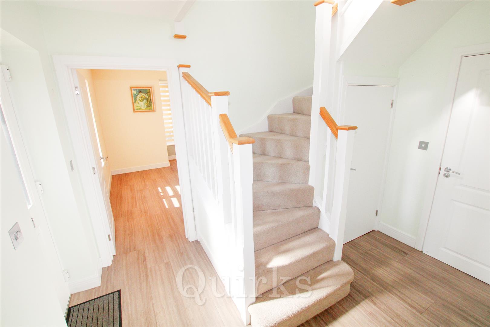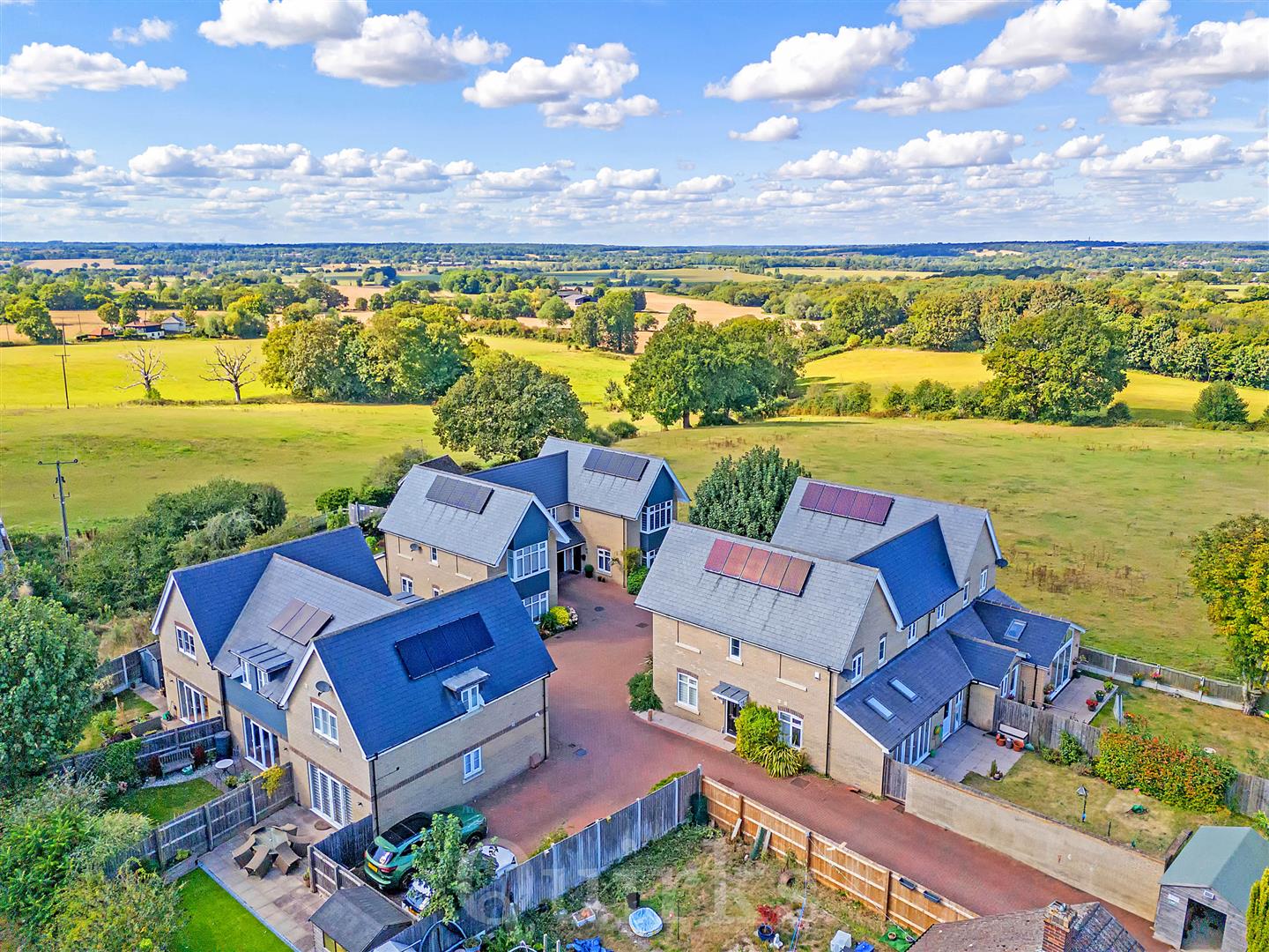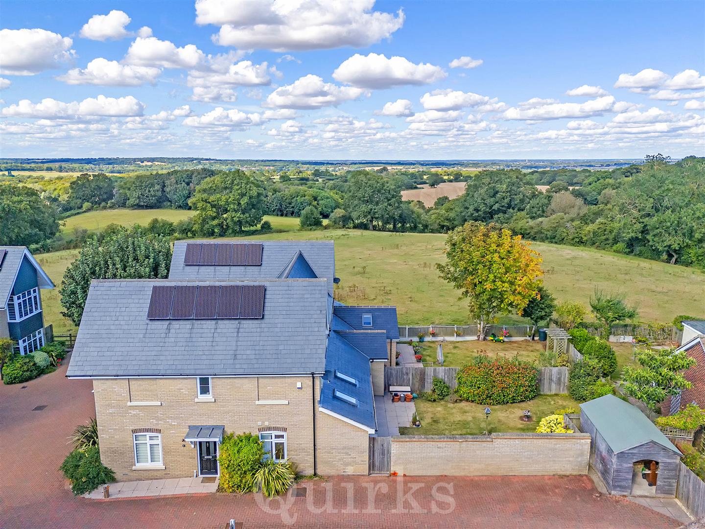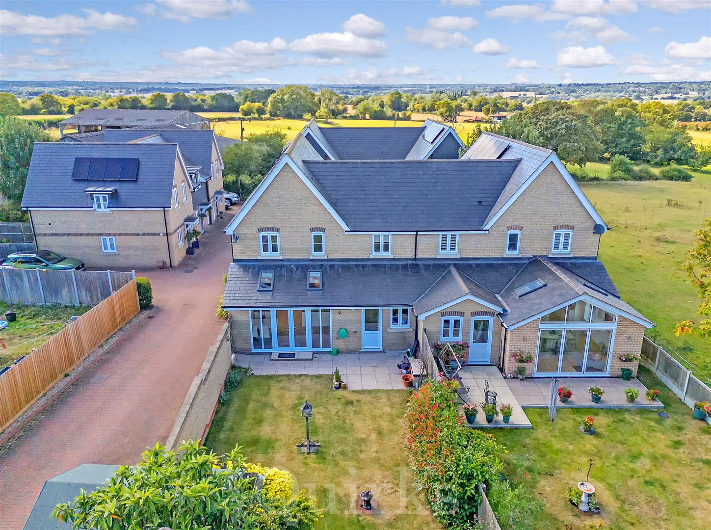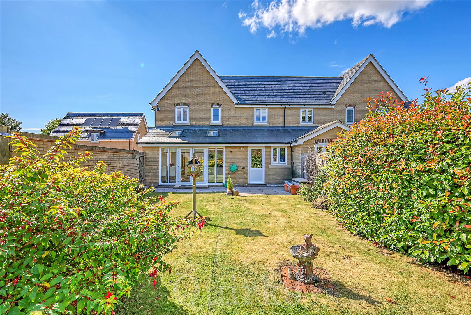 Constructed in 2016 by Stonebond and with remaining building warranty until March 2026, this modern and energy efficient family home, has solar panels and a B rating EPC. Presented to an excellent standard, this three bedroom semi-detached property is being offered for sale with NO ONWARD CHAIN. This secluded 'courtyard' development adjoins open fields and is still within walking distance of local pubs & restaurants, Stock Primary School and nearby 300 bus route. Deceptively spacious, the accommodation expands over nearly 1,500 square feet (including double-length garage) and includes a modern open plan / kitchen diner with integrated appliances, part vaulted ceiling with skylight windows and French doors leading to the rear garden. The ground floor also benefits from a hallway with built-in storage, ground floor W.C and triple aspect living room with feature bay window. To the first floor, the landing area is a good size natural light from the side window, bedroom one is an impressive room with vaulted ceiling and fully tiled en-suite shower room, bedroom two is a dual aspect, double room, with views over fields. Bedroom three would make a great guest bedroom or children's room, with space for a double bed. The family bathroom is well appointed with paneled bath and fitted shower screen, wall mounted shower above.
