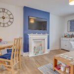 Double glazed window to rear. Range of base and wall mounted units providing drawer and cupboard space with work top surface extending to incorporate inset sink unit with cupboard beneath. Tiled surround. Built in oven and hob with extractor fan above. Space for dishwasher. Integrated fridge freezer and washing machine. Cupboard housing boiler.