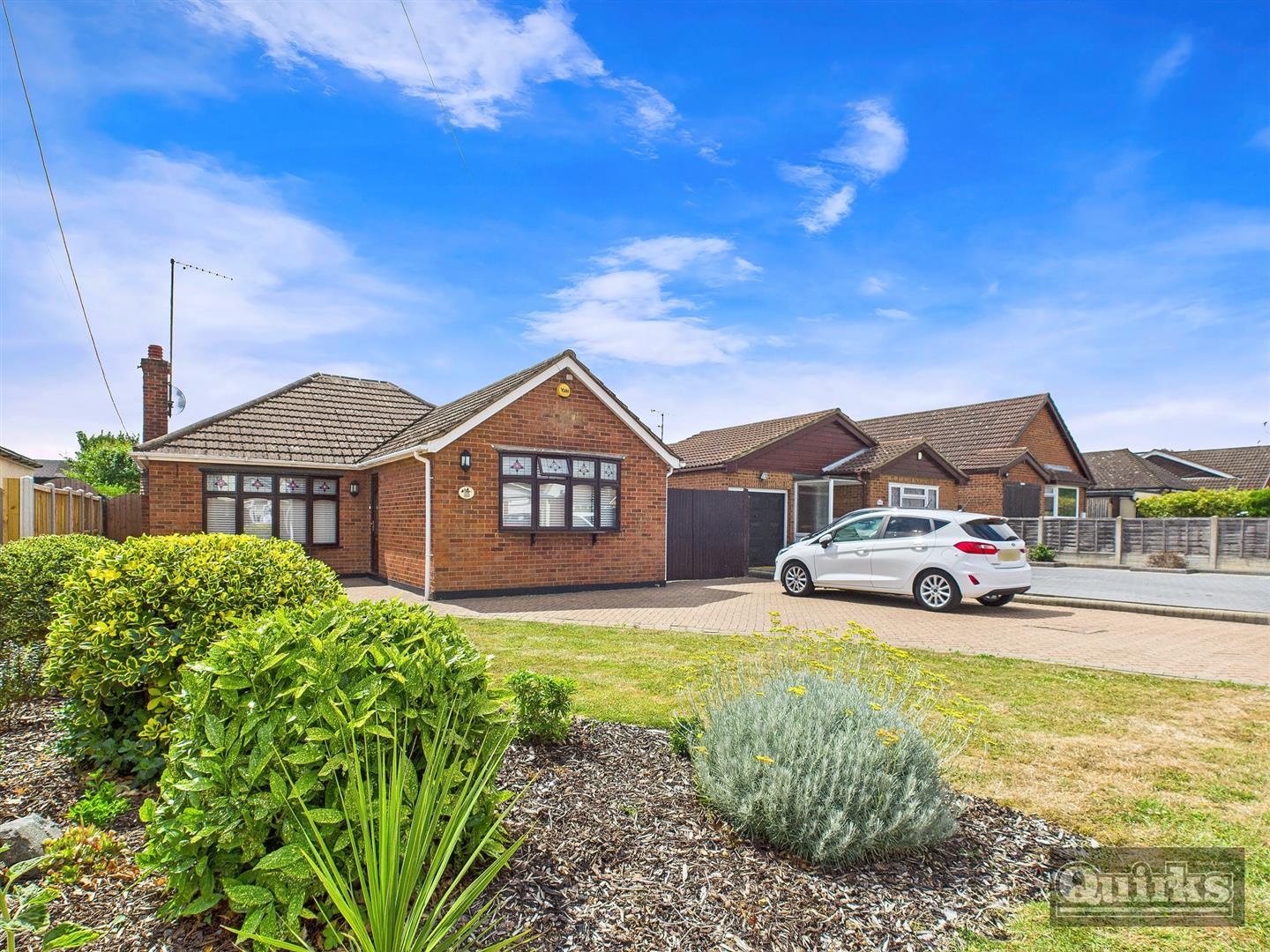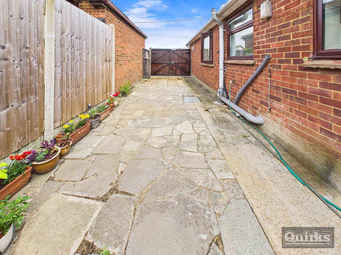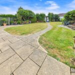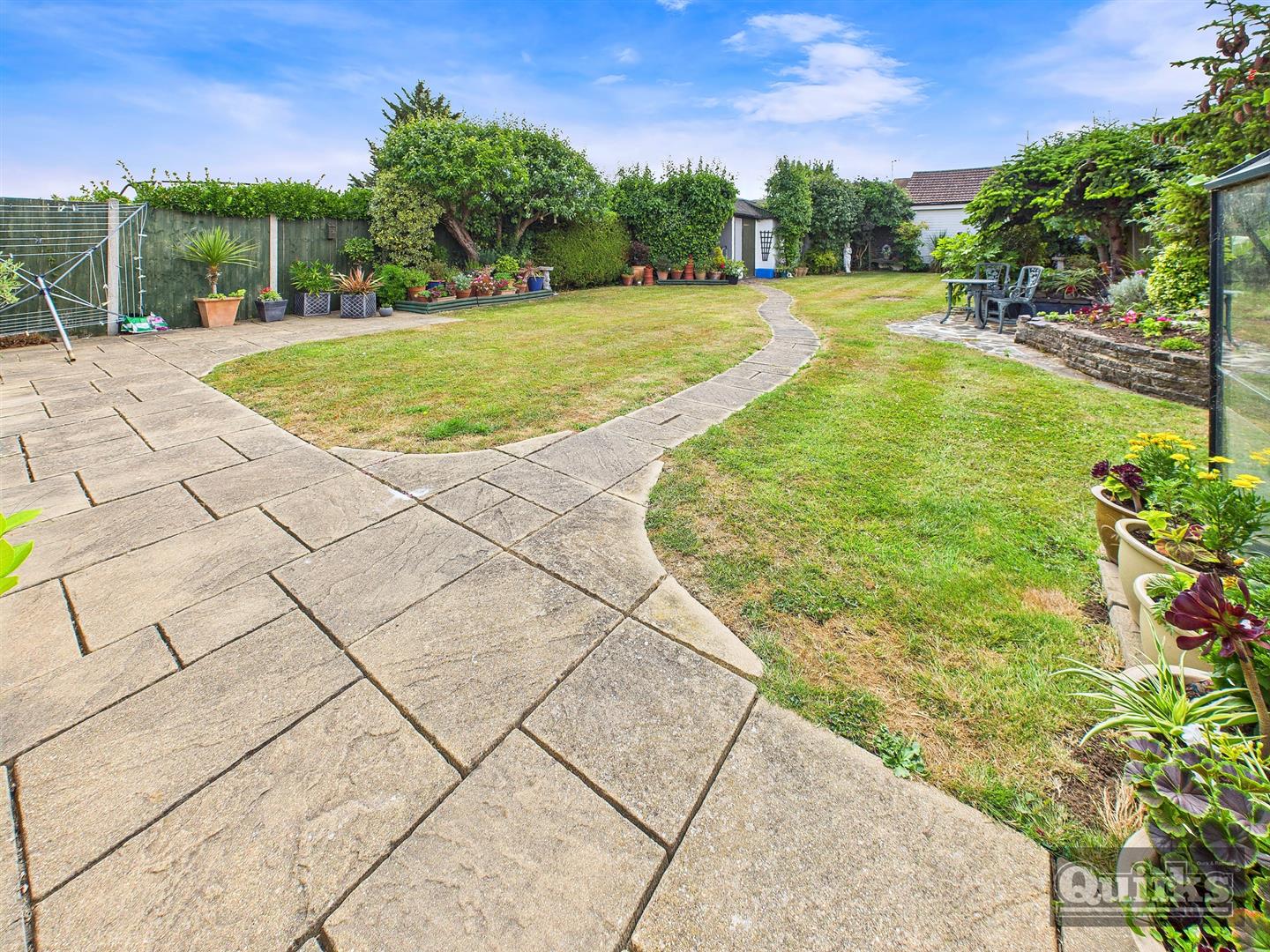 Block paved offering off road parking for several vehicles as well as a lawn and mature flower beds inset, vehicle sized gate leading to rear garden