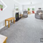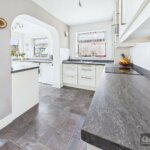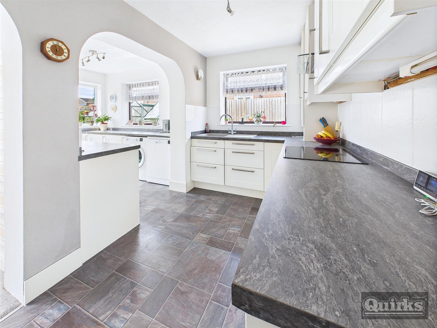 Double glazed window to flank and double glazed door to garden, range of modern units to both ground and eye level with complimentary roll edged working surfaces, fitted oven and hob with hood over, fridge/freezer and separate freezer, washing machine and dishwasher included, sink unit with mixer taps and drainer, ceramic tiled splash backs