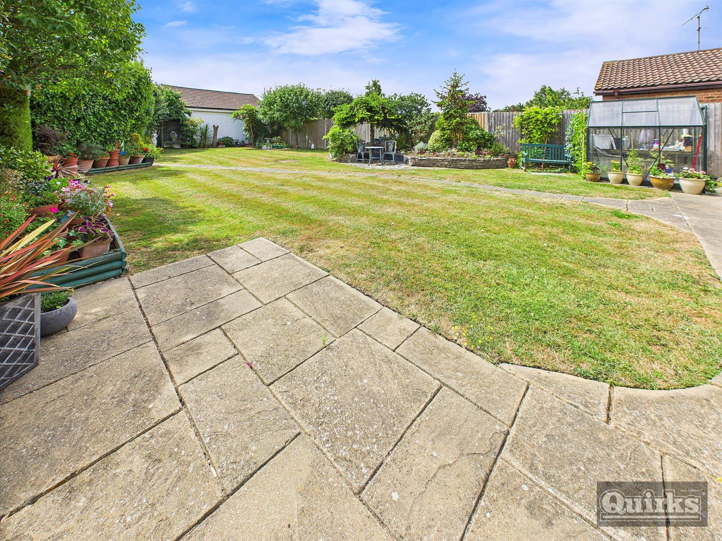 SOUTHERLY FACING laid mostly to lawn with mature flower and shrub borders, large patio area, vehicular access to one side via gate, ideal for storage of camper van or boat etc. Large OUT BUILDING (19'10 x7'11) with power and light