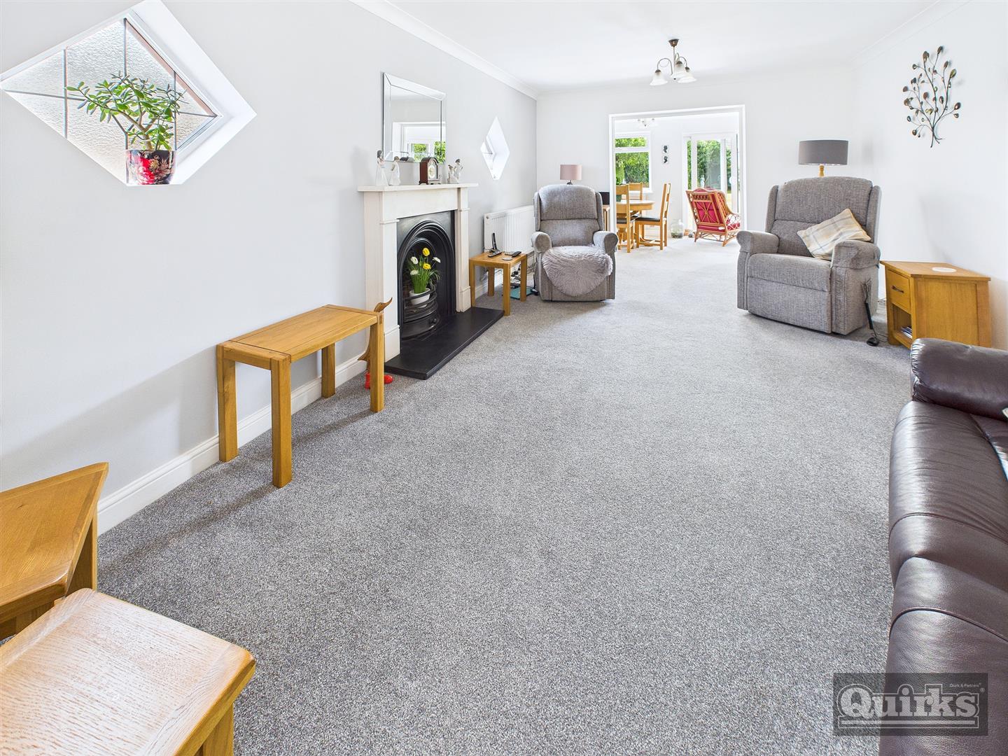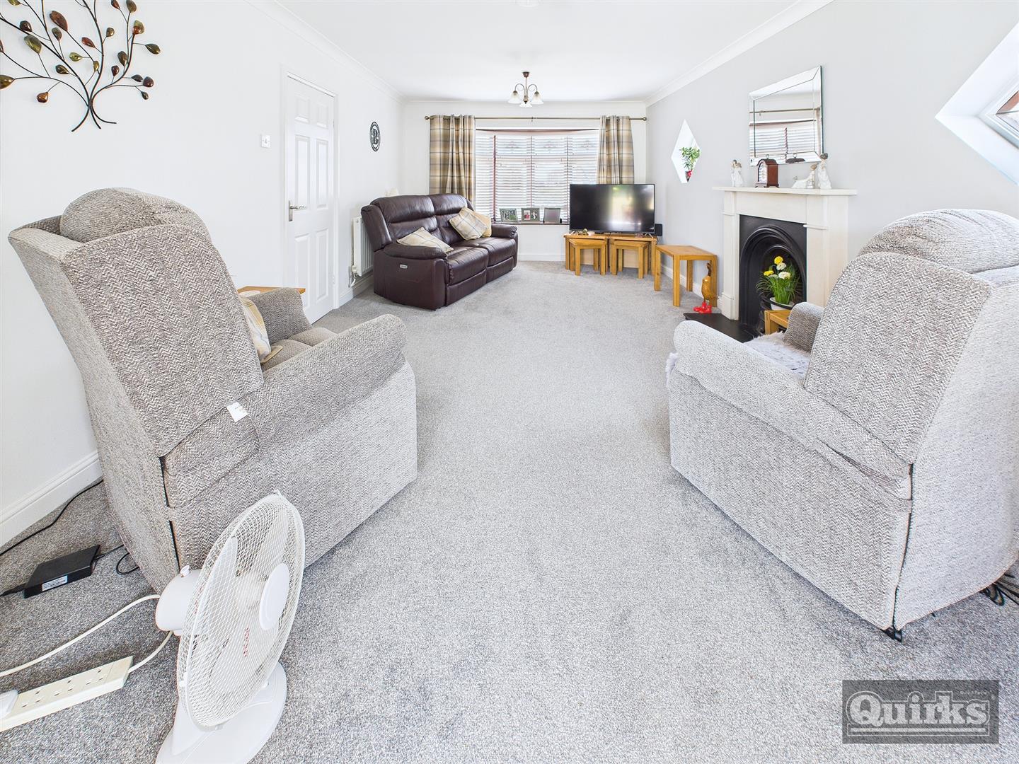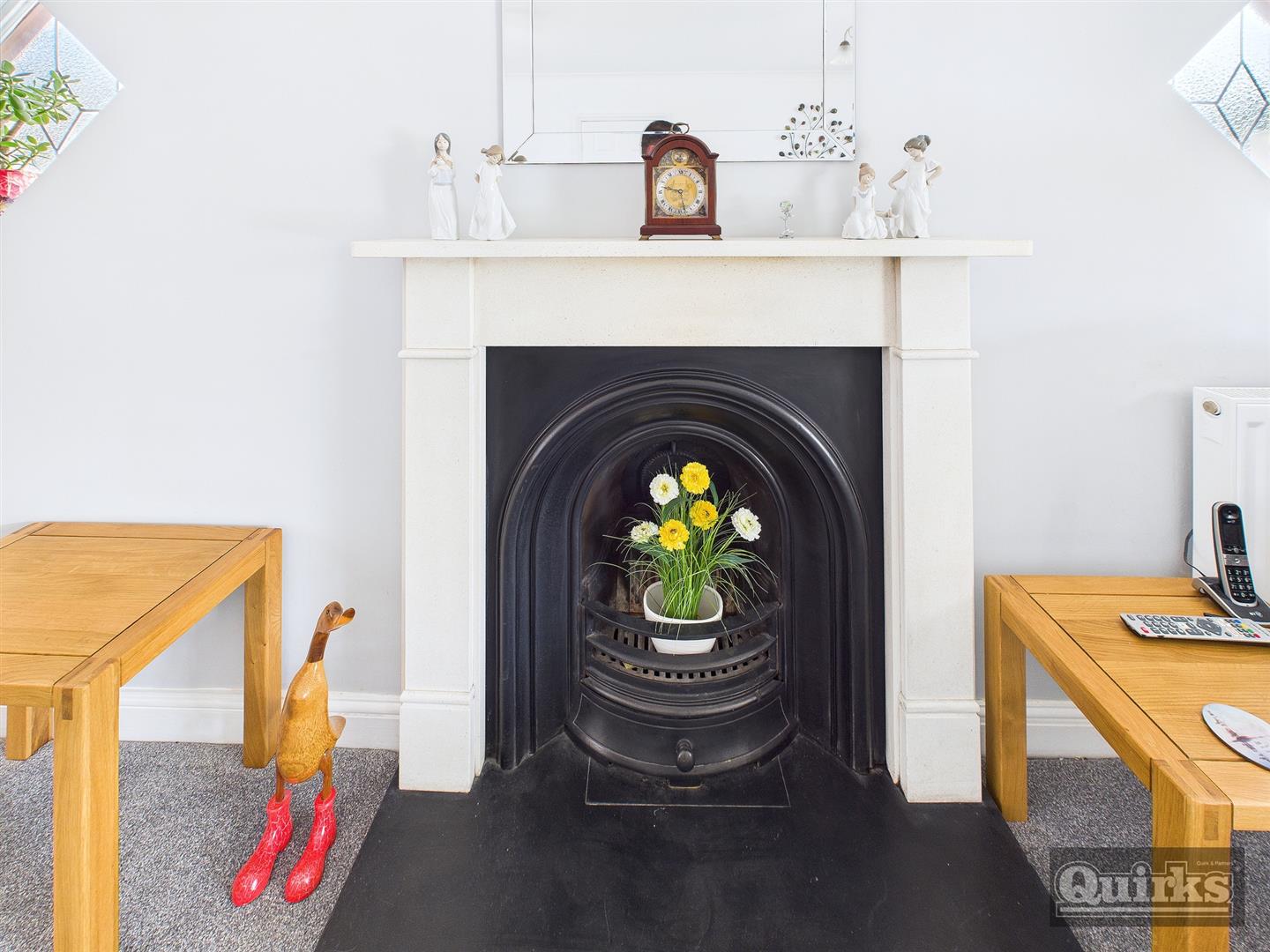 Double glazed window in bay to front, radiator, open aspect to dining room, smooth ceiling, feature fire surround and grate