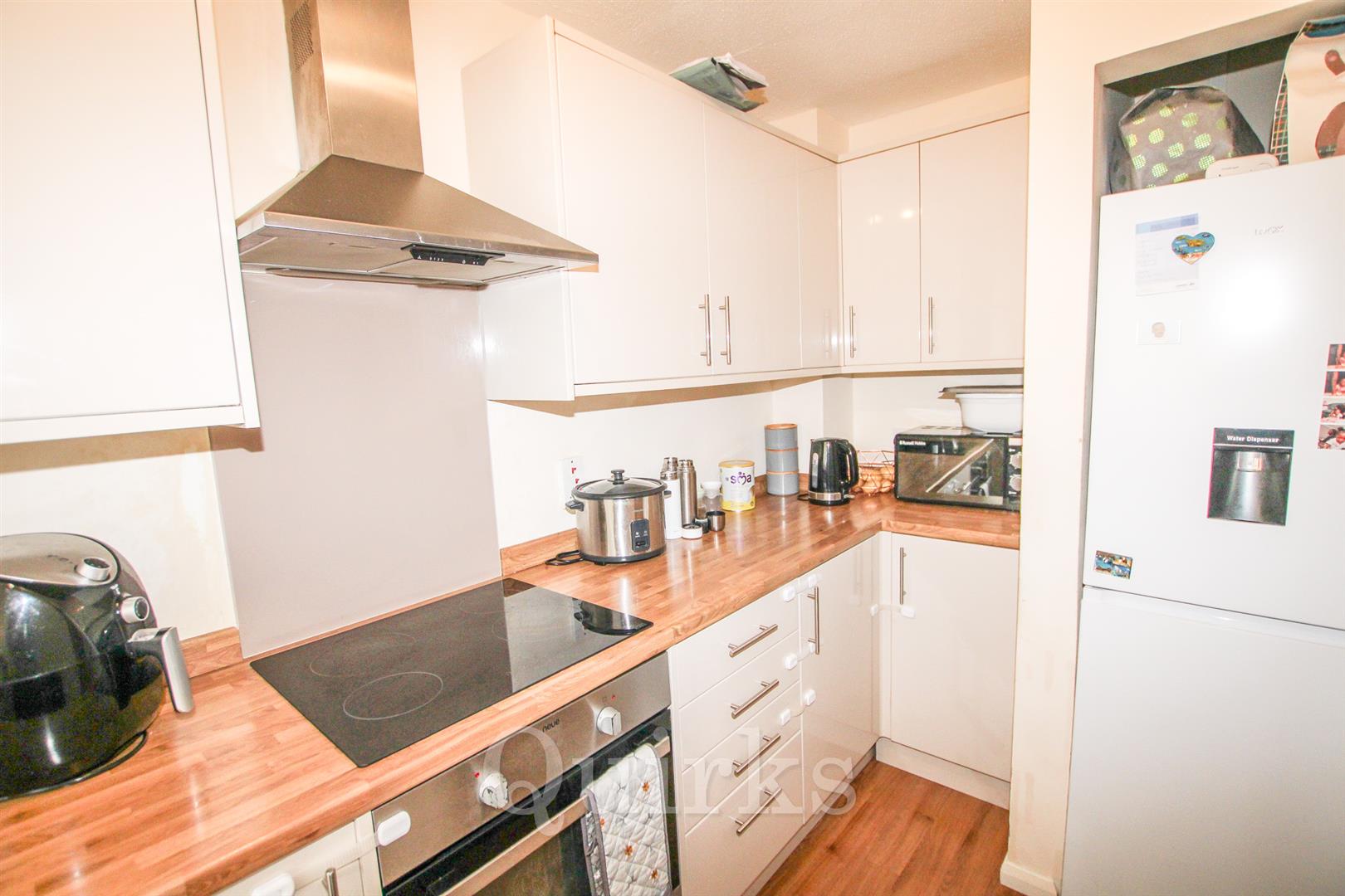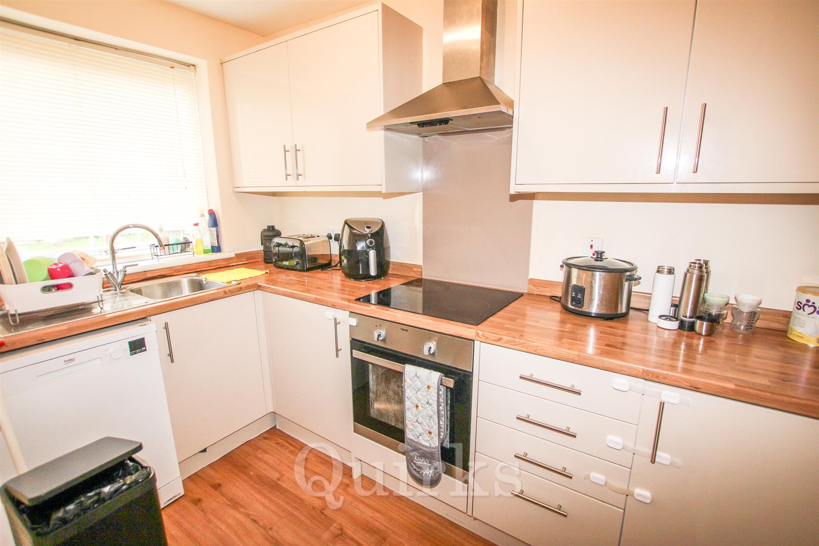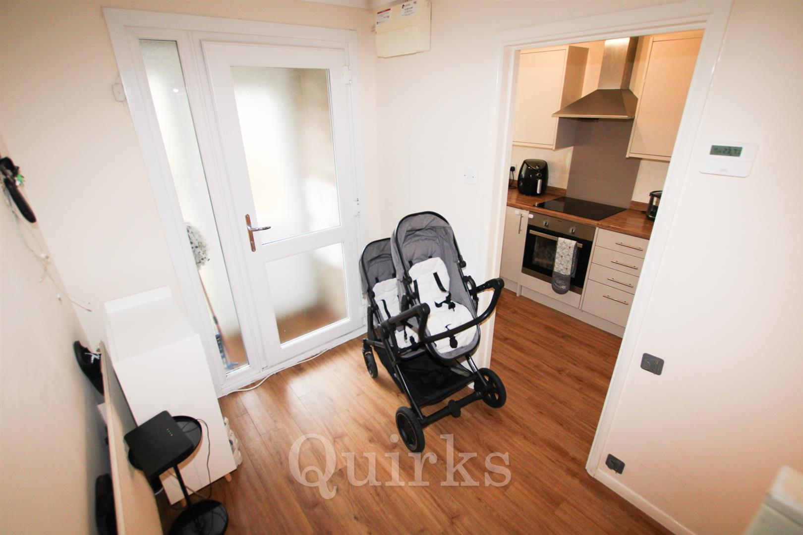 Located in the sought-after Queens Park Development, this well-presented two-bedroom terraced house offers a comfortable and modern living space. Ideal for first-time buyers or as an investment property, the house is being sold with no onward chain. Upon entering, you’re greeted by a spacious hallway that leads to the modern kitchen, featuring space for an oven, hob, fridge/freezer, and washing machine. To the rear is the bright and airy lounge/diner, with French doors opening to a low-maintenance east-facing garden, perfect for enjoying the outdoors. On the first floor, you'll find two generous double bedrooms, both equipped with built-in storage. The recently updated bathroom is fitted with a three-piece white suite, providing a clean and modern finish. Additional benefits include a detached garage in a nearby block, along with parking space. This charming home is perfect for those looking to get on the property ladder or add to their rental portfolio.