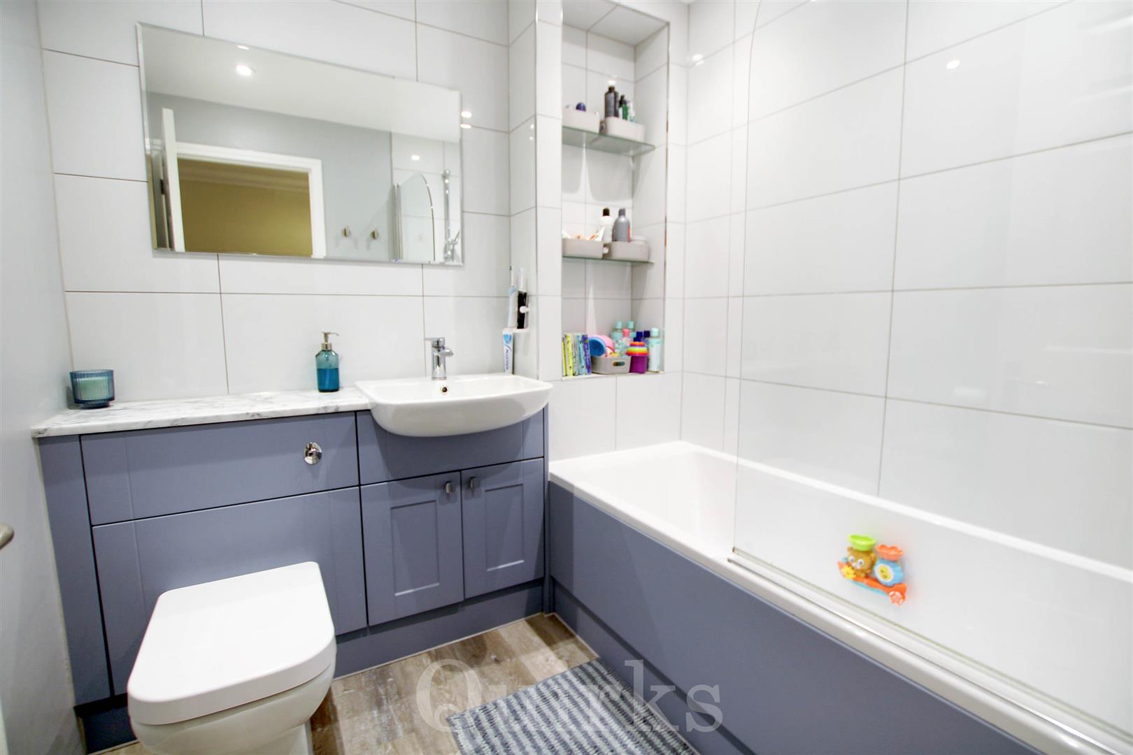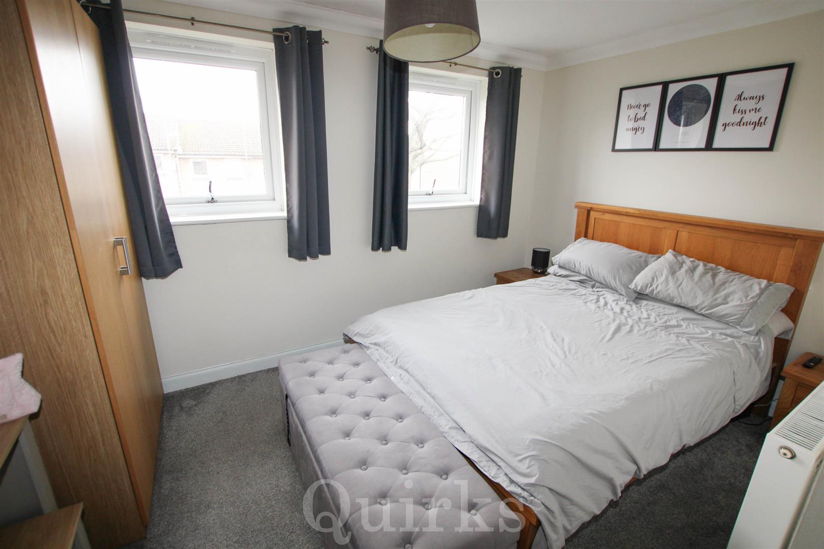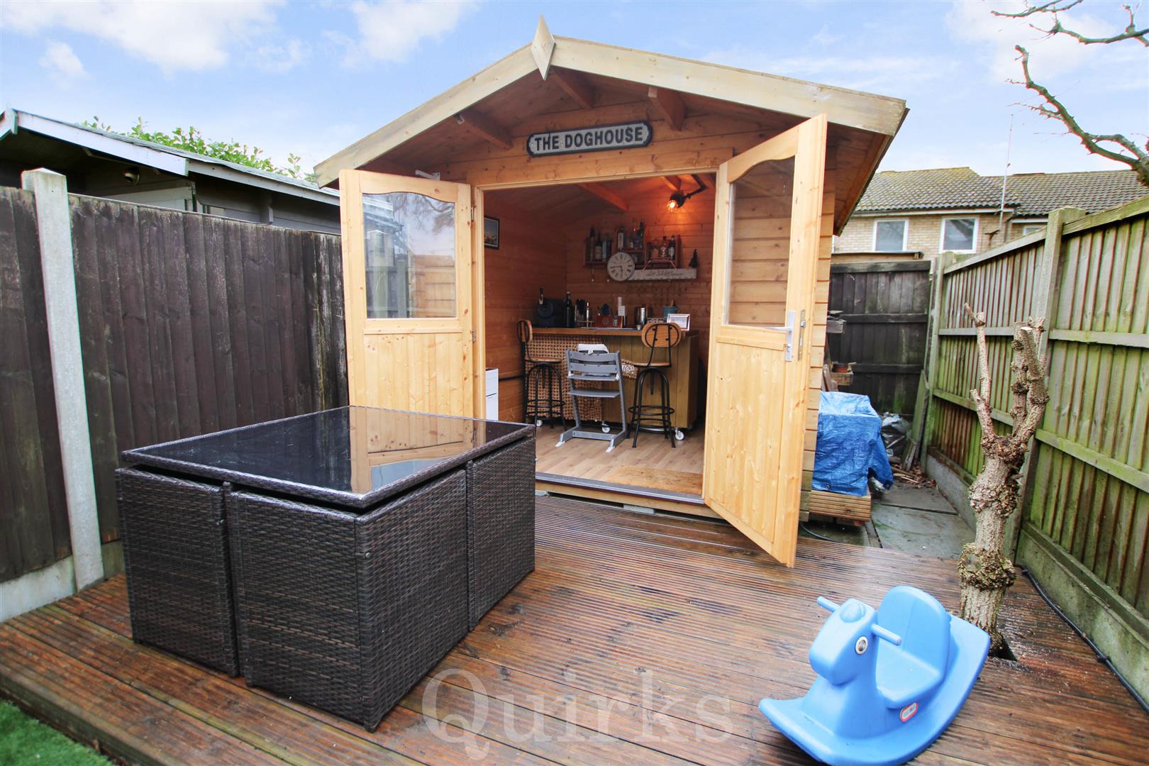 An immaculately presented and modern two bedroom house, ideally suited for first time buyers, investors and downsizers. This property is situated in a popular cul-de-sac, within the Queens Park area of Billericay, just a short walk to The Pantiles Shopping Parade, Lake Meadows Park and Billericay Railway Station. This property is deceptively spacious and includes a sizeable entrance hallway, with plenty of built-in storage, leading to the modern fitted kitchen, which includes an integrated dishwasher, four ring induction hob, oven and microwave, there are spaces for a fridge / freezer and washing machine. The living room has a set of double glazed French doors and matching side windows and access to the under-stairs storage cupboard, a fitted L-shaped corner seat with built-in storage and dining table, to suit the room perfectly. The first floor landing is an excellent size, with access to the loft, housing the ATAG combination gas boiler installed in 2023. The property benefits from two double bedrooms and a refitted, modern bathroom, with a modern white suite including bath with shower above. Externally the property has a fenced bin store to the front of the house, there is allocated parking and garage located nearby to the house. The rear garden is low maintenance with a paved patio area, artificial lawn, raised flower beds and outside power points. To the far end of the garden is a decking area and detached outbuilding, currently arranged as a bar area with power & lighting, which is great for entertaining and BBQ's and could also be converted to a home office.