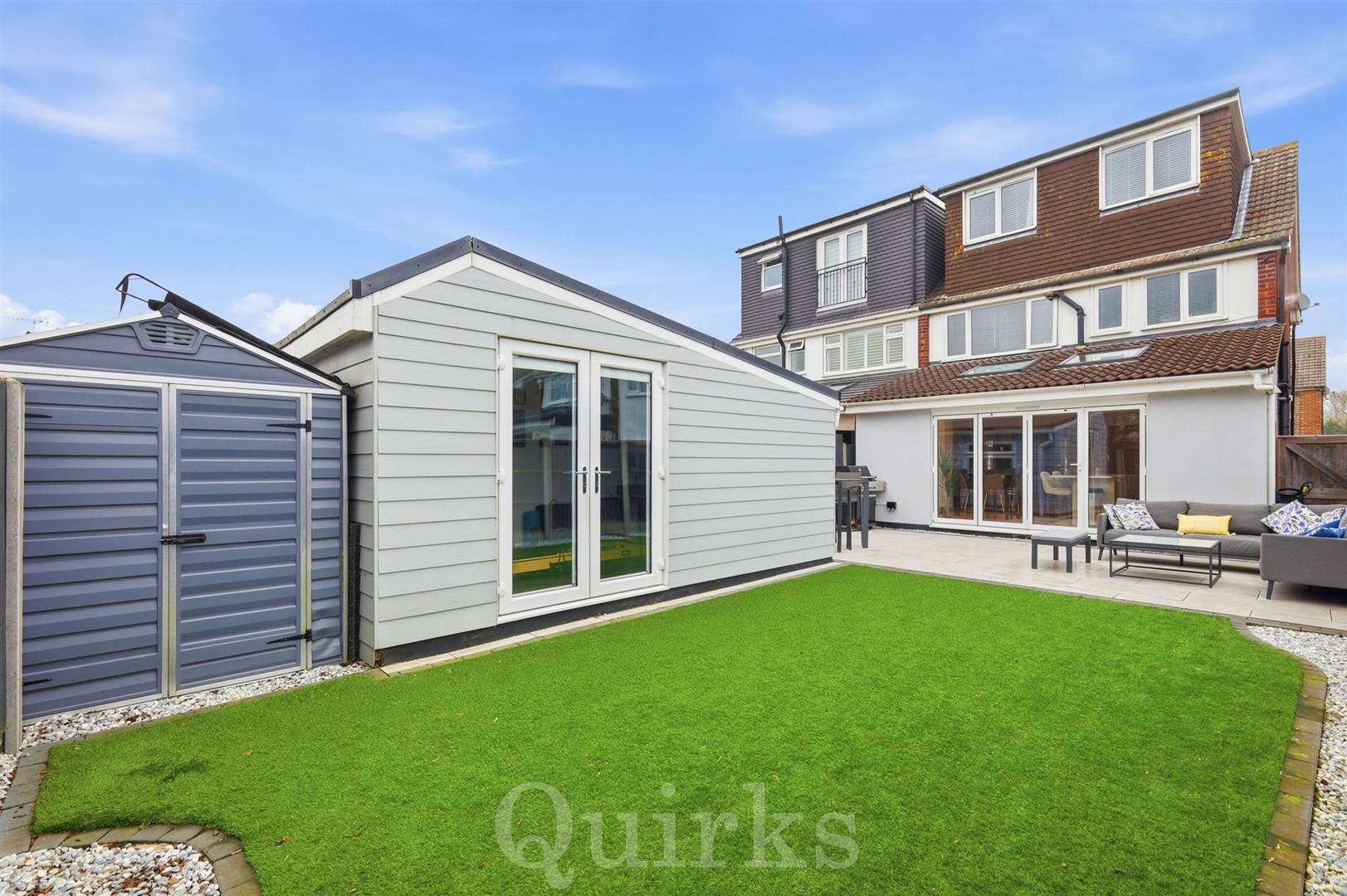 An extended four bedroom semi-detached family home, with open plan kitchen / living space, family bathroom & shower room, South facing garden and outbuilding / home office, popular cul-de-sac location, near to schools.