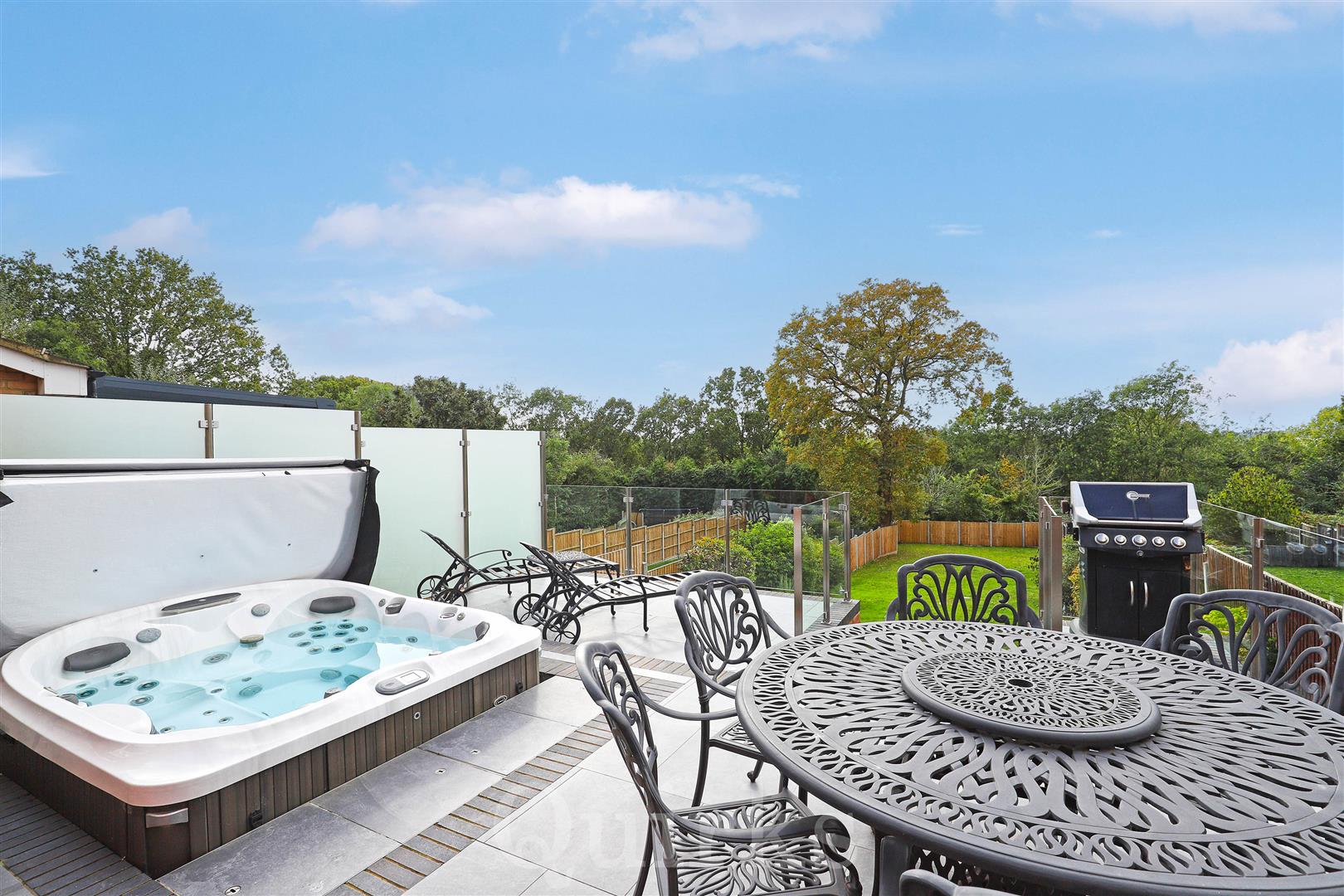 Upon entering this immaculately presented property, you are greeted by an impressive hallway leading to the stunning kitchen, which has been fully upgraded with quartz worktops and integrated appliances. Ample storage is complemented by a spacious separate utility room equipped with further integrated appliances, such as a double fridge/freezer, washing machine, and dryer. The utility room also offers convenient access to the side passageway. The ground floor also includes access to the garage, a versatile office space, a cozy dining room, and a convenient downstairs WC. At the rear of the home, you will find a spacious living room that offers breathtaking views of the countryside and the expansive garden. This area features elegant porcelain tiles, a luxurious sunken hot tub, and plenty of seating for entertaining, with steps leading down to the lush grass area. Upstairs, the property boasts four generous double bedrooms, including a master suite with an en-suite bathroom, a family bathroom, and a storage cupboard, as well as access to the loft. The property is located in a quiet side turning, with elevated views of the surrounding Countryside. To front of the property features a spacious driveway that can accommodate up to five cars, as well access into the garage, and a side passage way leading you to the rear garden, making this home as practical as it is beautiful. This property is ideally situated just a short drive from both Billericay and Wickford train stations, offering convenient access to the Greater Anglia train line that connects you directly to London Liverpool Street. Enjoy the great outdoors with Barleylands just 6 minutes away, featuring a range of outdoor activities and charming boutique shops. For dining and entertainment, Festival Leisure Park is only a 10-minute drive, boasting a variety of restaurants and bars. With excellent bus connections and easy access to the A127, commuting is a breeze. Families will appreciate the excellent school catchment, which includes Crays Hill Primary School and nearby to both Billericay and Wickford Secondary schools.