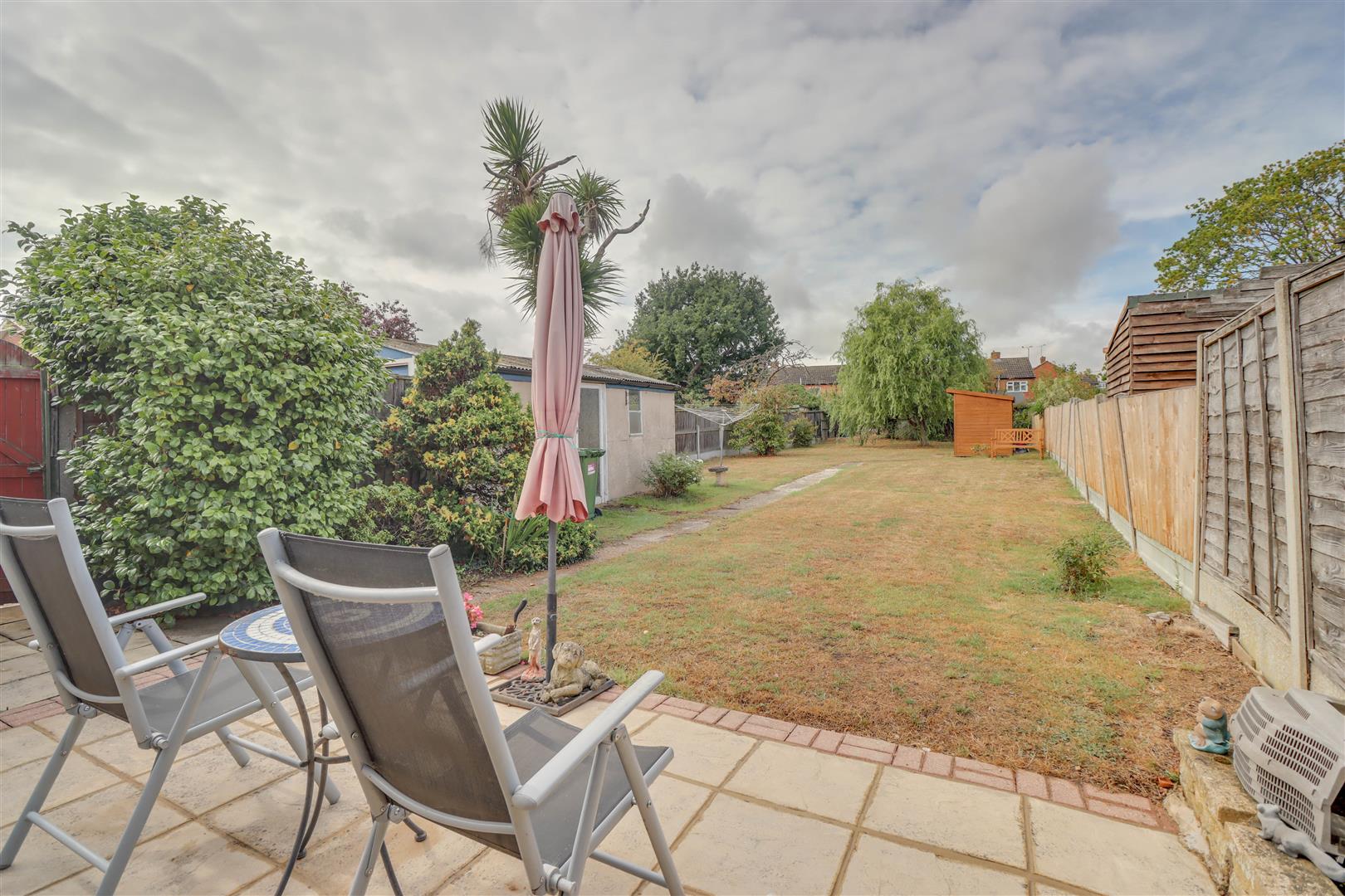 Commencing with paved patio to immediate rear with remainder laid to lawn. Shed. Access via path and gate to side.