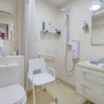Suite comprising of low level WC, vanity wash hand basin and wet room style shower. Extensive tiled surround. Radiator/rail. Access to loft.