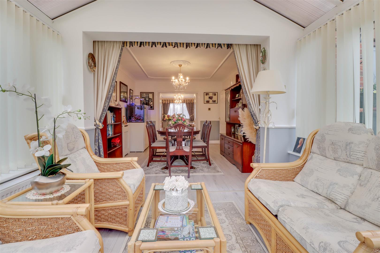 Double glazed window to front. Radiator. Fireplace with inset gas fire with coal effect. Laminate finish to floor. Double glazed Bi-folding doors to:
