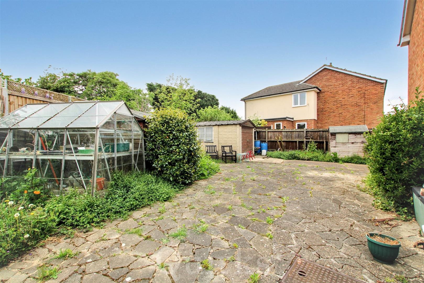 Situated in a highly sought after area for Buttsbury & Mayflower schools, is this three bedroom, semi-detached family home, offered for sale with NO ONWARD CHAIN. This property is nestled in a quiet cul-de-sac, with a large corner plot, providing a unique opportunity to create further accommodation, with plenty of room for a side extension or space to build an annexe if required, subject to planning consent being granted, this is the same to the rear aspect, with space to extend the kitchen / living area. The independent driveway has double gates leading to a detached garage, two storage sheds and a greenhouse, further parking available to the side of the house, suitable for several vehicles. Internally the light and spacious hallway has plenty of built-in storage and leads to a sizeable living room 22ft (6.7 meters) with feature fireplace, originally the house was built with patio doors, this would be a straight forward addition to change if preferred. The dual aspect kitchen, has garden access, built-in pantry cupboard, wall and base level units, stainless steel sink / drainer, spaces for oven, fridge /freezer and washing machine. The naturally light first floor landing has a built-in airing cupboard and loft access, with fitted ladder. Bedrooms one and two benefit from fitted / built-in wardrobes and bedroom three would make an ideal children's bedroom or study. The family bathroom is fully tiled, with a modern white suite, with paneled bath and electric shower above. This property is conveniently located for nearby shops, the 300 bus route, Billericay Mainline Railway Station and Lake Meadows Park.