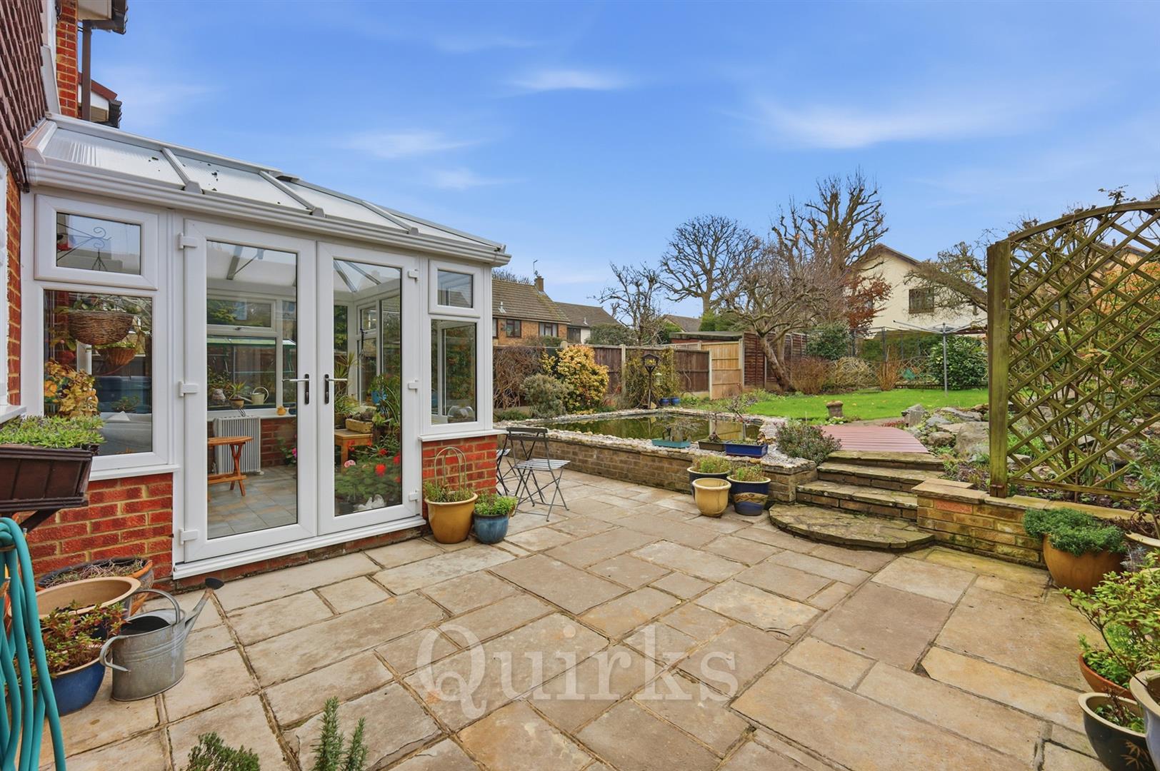 An immaculately presented, FOUR BEDROOM DETACHED FAMILY HOME, in a highly sought after location, being in the same ownership for over 40 years. This property offers a beautifully maintained rear garden, in excess of 100ft in depth, with storage shed, mini greenhouse and fish pond, there is scope to extend (subject to planning consent being granted) The accommodation includes an entrance hallway with built-in storage, integral garage, naturally light living room with bay window and staircase with oak balustrading, there is a separate dining room, which an excellent size, leading to the renovated and double glazed conservatory, with recently replaced windows, roof and French doors. The kitchen has a range of wall and base level units, a stainless steel sink / drainer, integrated fridge and freezer, dishwasher, freestanding oven and washing machine to remain, there is side door access to the garden. This property has the advantage of a ground floor W.C, family bathroom and en-suite shower room to bedroom one. The first floor landing has a built in airing cupboard housing the hot water tank and access to the loft, which is partly boarded with a fitted pull down ladder. There are fitted and built in wardrobes to all bedrooms, providing plenty of storage space. Externally the driveway has space for approximately 3 vehicles, with side gate access to the garden. Rarely do detached properties in this desirable location become available, which is convenient for Buttsbury & Mayflower Schools, Norsey Woods, Lake Meadows Park, Billericay Mainline Station, nearby shops and the 300 bus route.