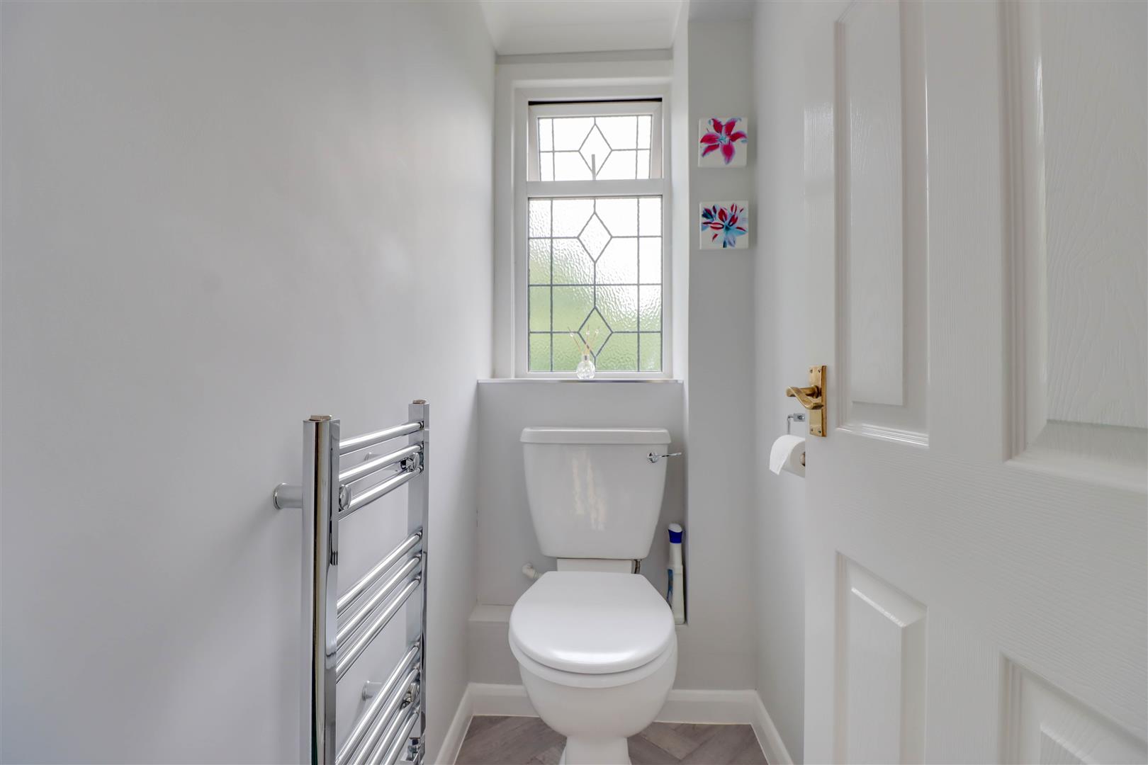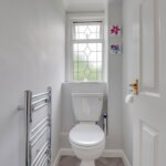 Double-glazed opaque window to rear. Low level WC. Chrome radiator/rail.