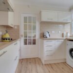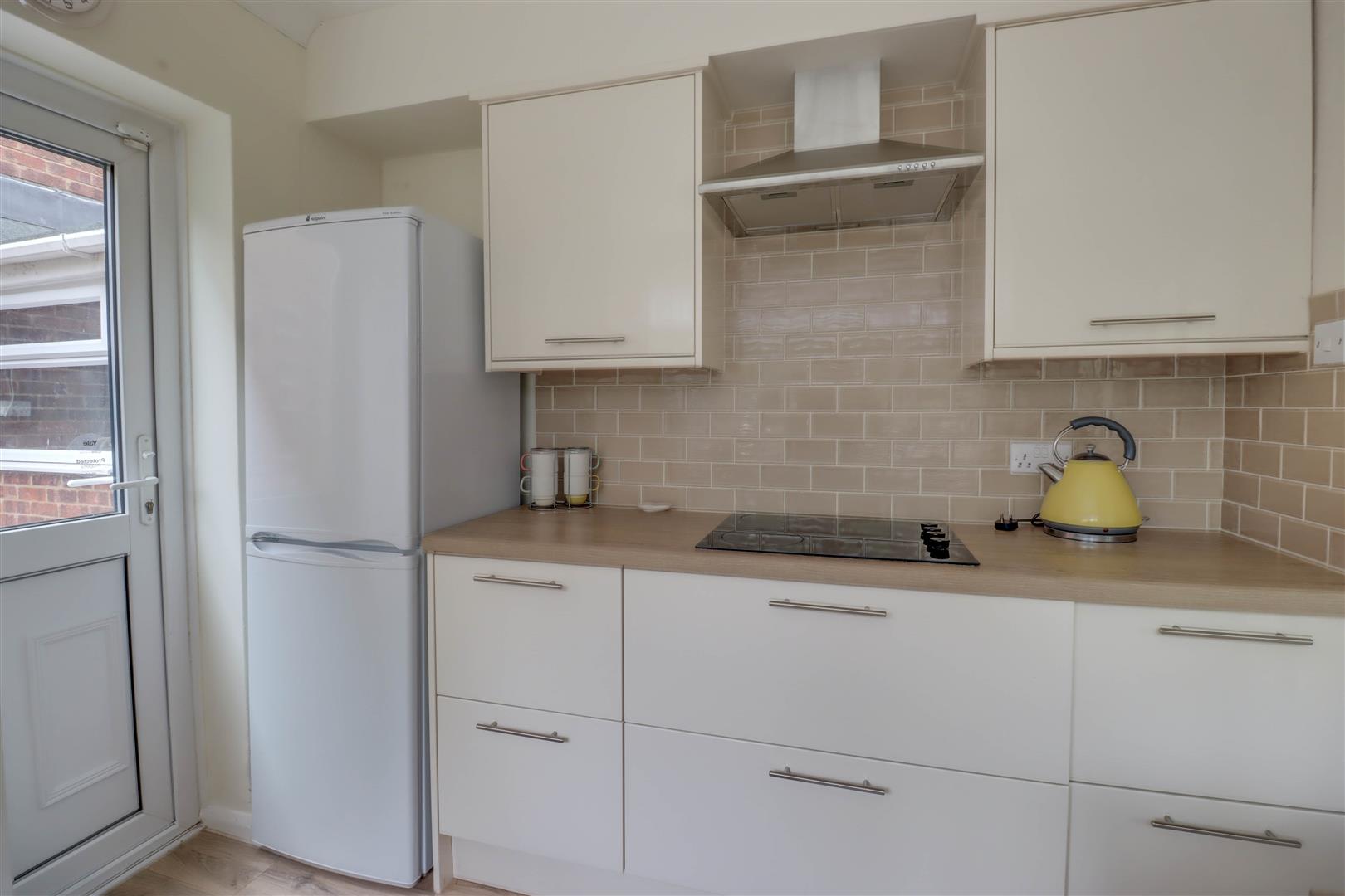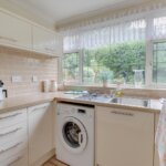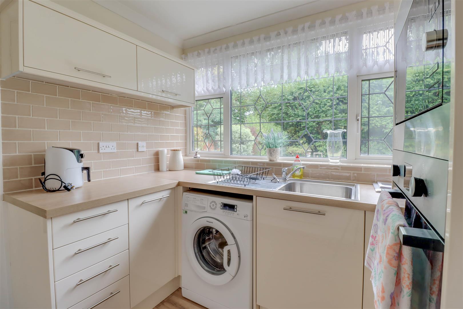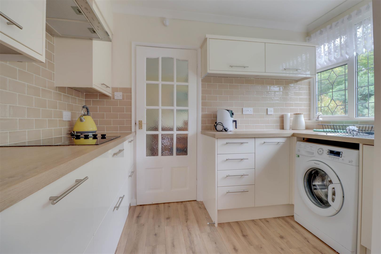 Double glazed window to rear. Double glazed door to rear garden. Range of base and wall mounted units providing drawer and cupboard space with work top surface extending to incorporate inset sink unit with cupboard beneath. Built in oven, microwave, hob and extractor fan. Space for washing machine and fridge freezer. Tiled surround.