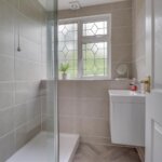 Double glazed opaque window to rear. Vanity wash hand basin and shower cubicle. Extensive tiling to walls. Extractor fan.