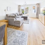 Double glazed French doors to garden, radiator, access to under stair storage, wood effect laminate floor covering