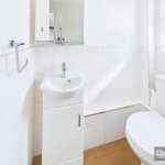 Double glazed window to front, radiator, wood effect tiling to floor, low flush wc and wash hand basin inset to vanity cupboard, part tiled walls