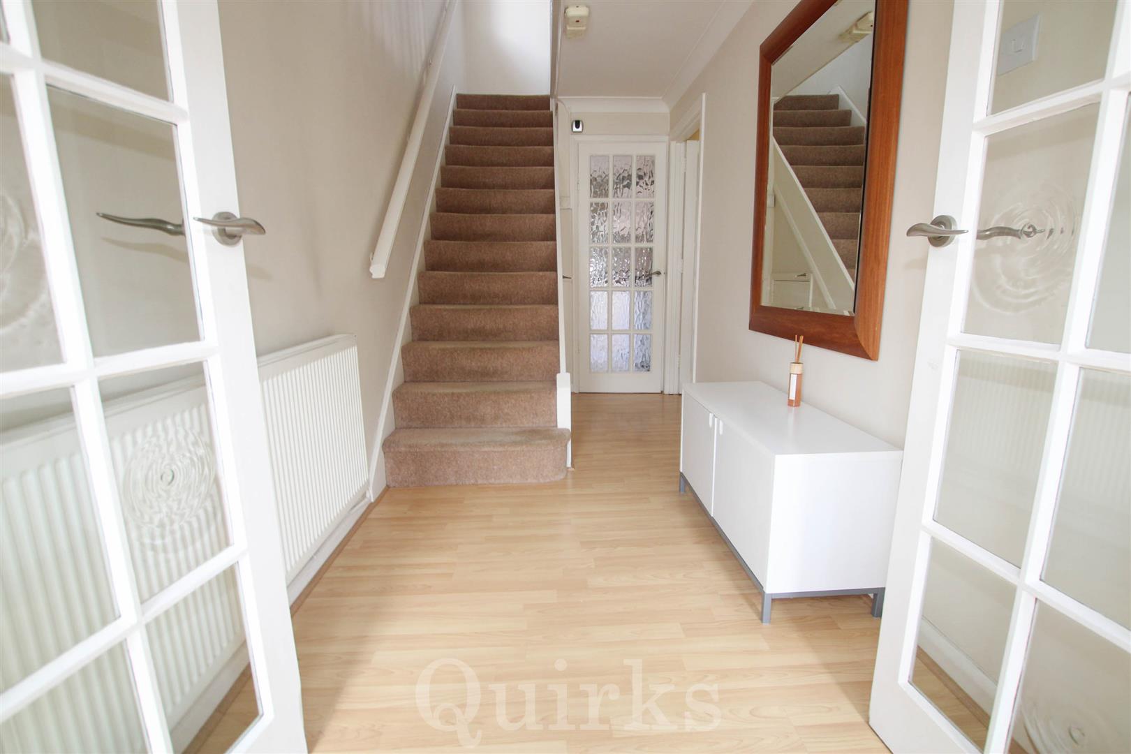 Situated in a quiet cul-de-sac position on the popular Birds Development, is this extended three bedroom, semi-detached family home with a South facing rear garden, offered for sale with NO ONWARD CHAIN. The accommodation includes an entrance porch with double doors to the sizeable hallway, with under stairs storage, leading to the fitted kitchen, with side door access, integrated oven & grill, four ring gas hob, sink/drainer and a range of free standing appliances available under separate negotiation. In addition is a Glow Worm, combination gas boiler, installed in 2022, with extended 10 year warranty. To the front aspect is a family room with double doors leading to the bright and spacious living / dining room, with feature fireplace and double glazed, sliding patio doors, to the garden. There is potential to make an open plan kitchen / living space if required. The first floor offers three bedrooms all with wardrobes available and a family bathroom serving these rooms, which includes a three piece suite, with panelled bath, shower above, low level W.C and vanity unit wash hand basin. Externally there is the advantage of an independent driveway leading to the 20ft long garage, with power and lighting, up and over doors to the front and back, creating excellent access to the patio area and un-overlooked rear garden. This superb location, provides easy access to the Mill Meadow Nature Reserve, with an access gate at the end of the Cul-de-sac, making Billericay High Street & Mainline Railway Station, in walking distance, along with nearby shops and schools.