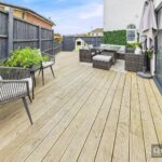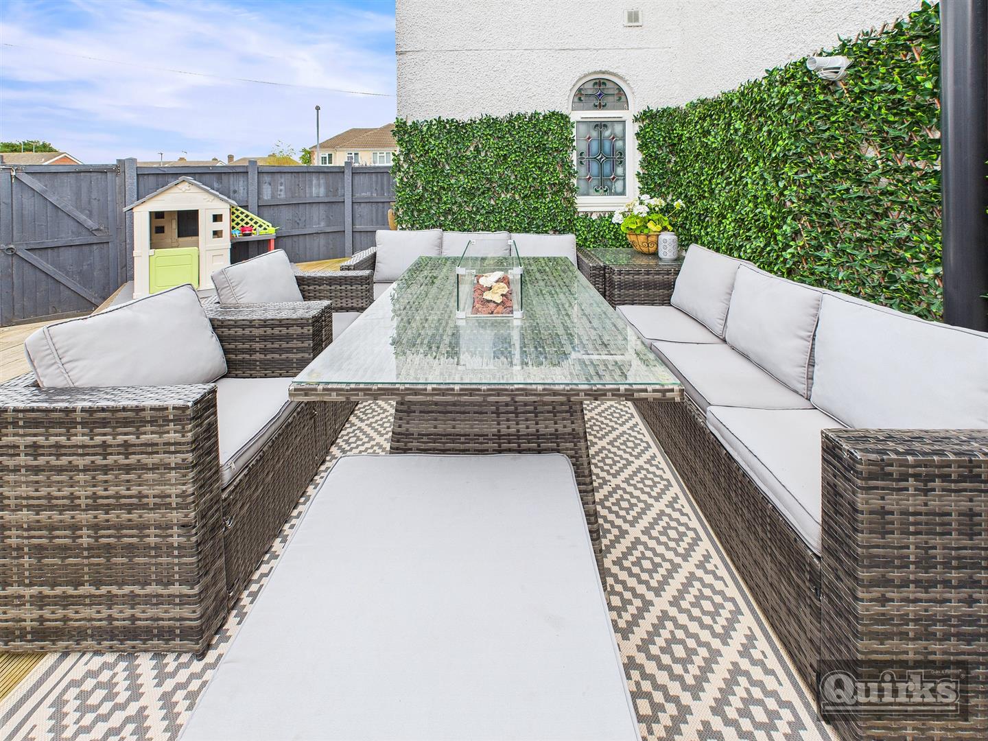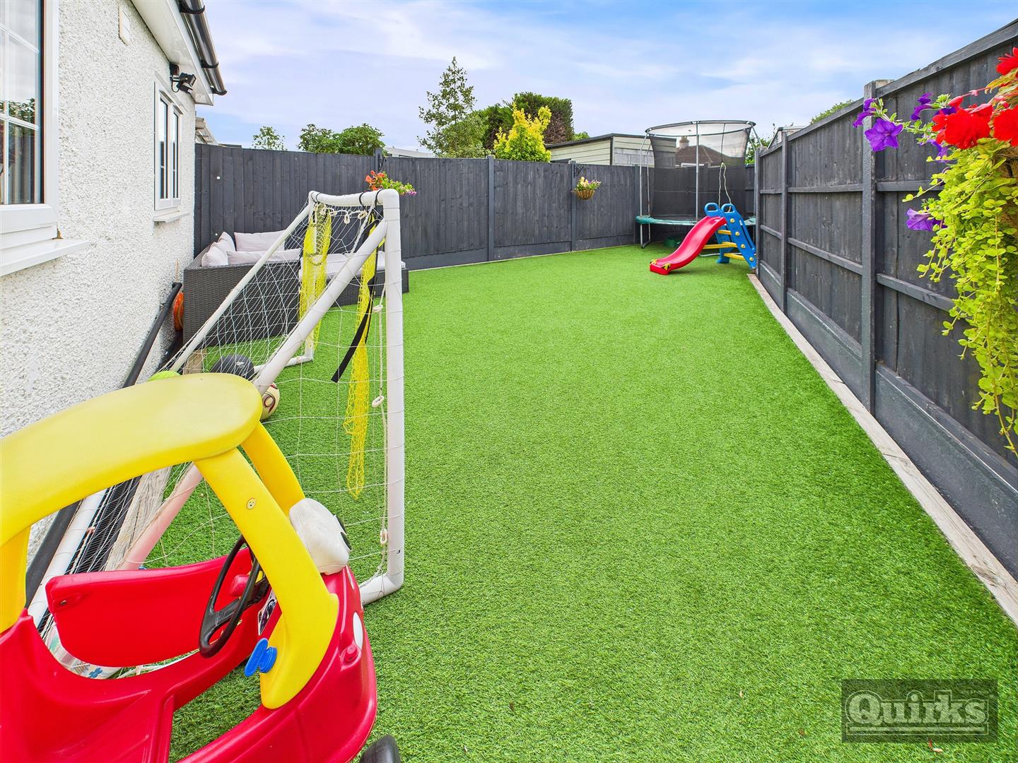 The property is situated on a corner plot with decked area with remainder laid to artificial lawn. Fencing to side and rear boundaries. Outside lights. Access to side via gate.