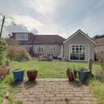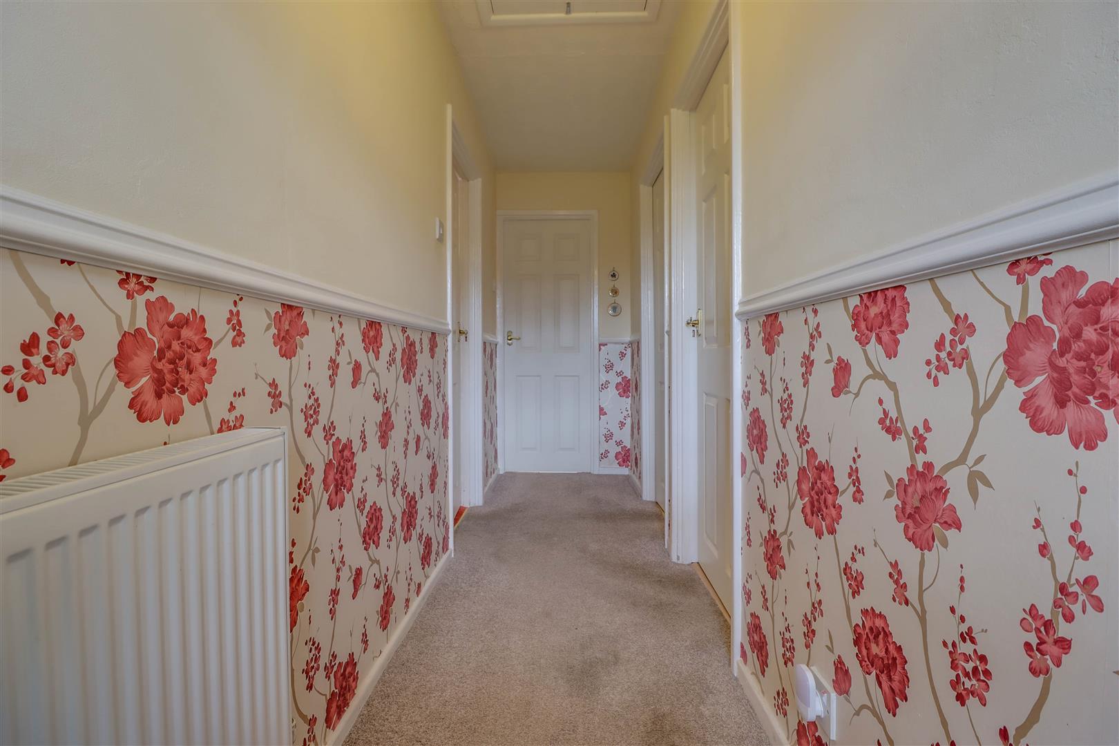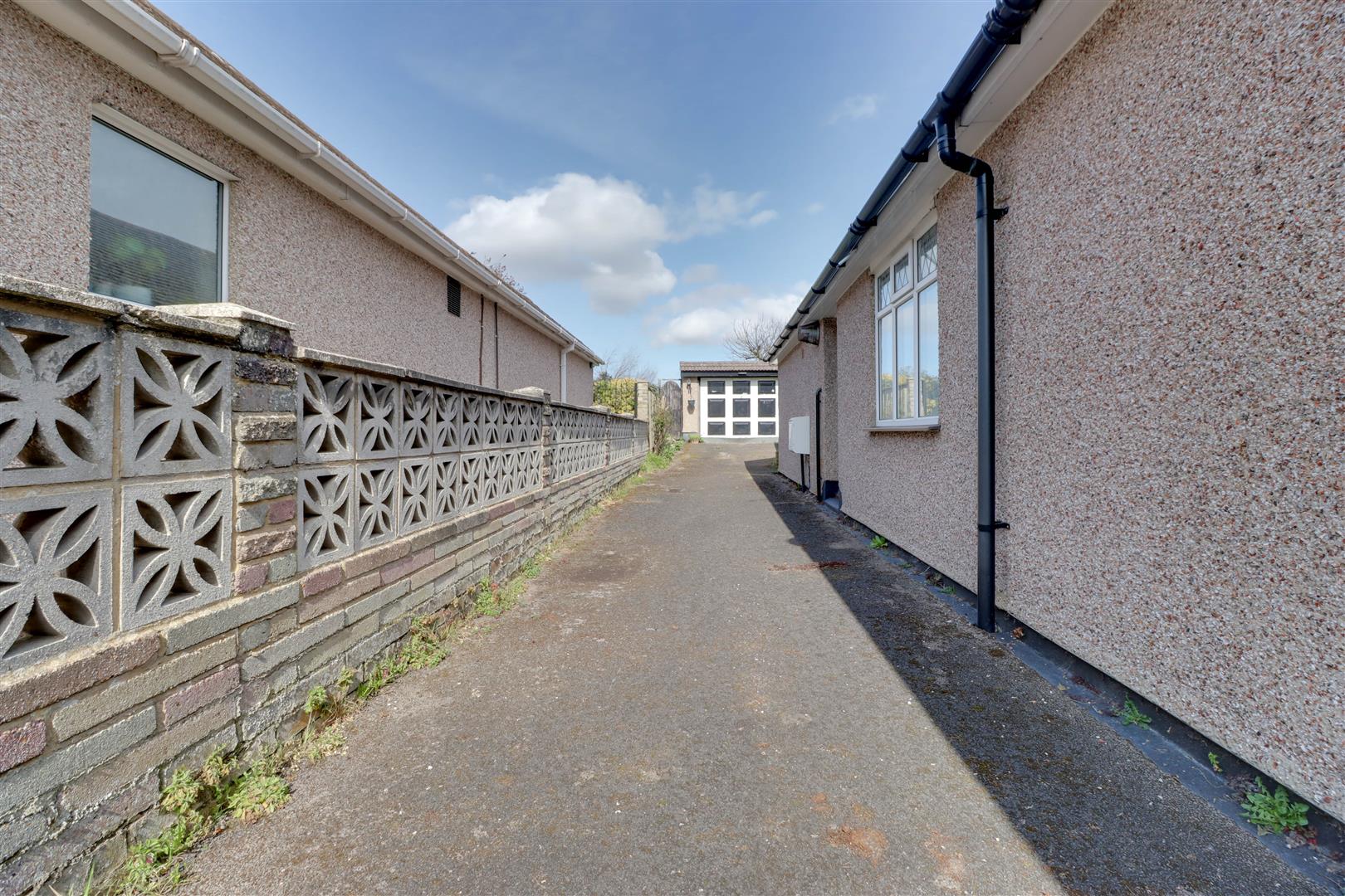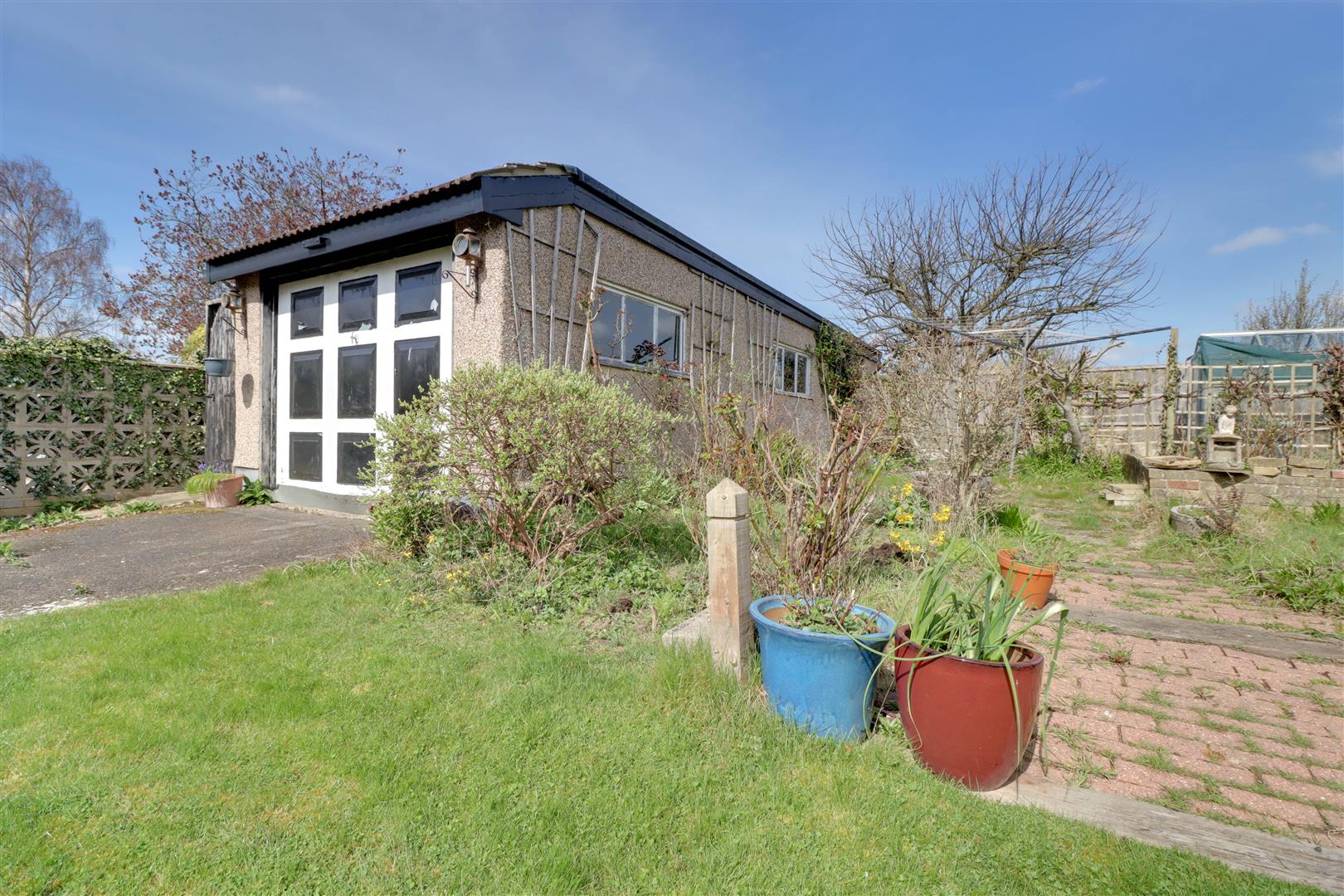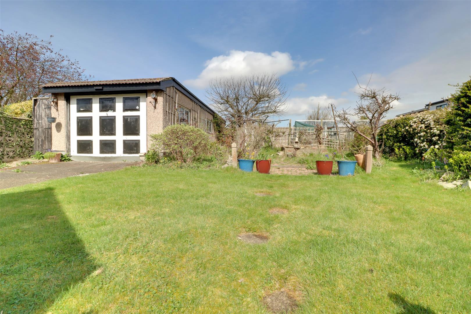 Patio to fore, doors to garage and workshop, side pedestrian and vehicular access, fenced to all boundaries, lawn and mature flower and shrub borders, greenhouse
