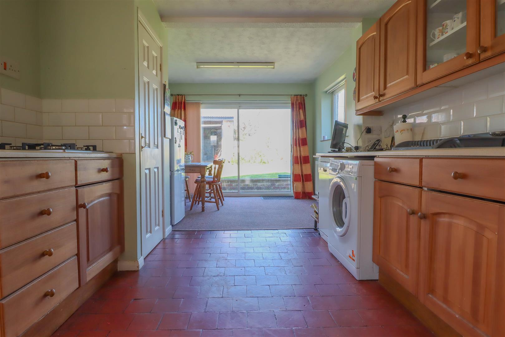 Double glazed patio doors to rear garden, Radiator, extensive range of units to both ground and eye level incorporating complimentary worksurfaces with inset sink with mixer tap, fitted hob and oven with grill, fitted microwave, tiled splash backs, quarry tiled floorcovering, larder cupboard, double glazed door to garden