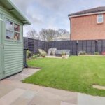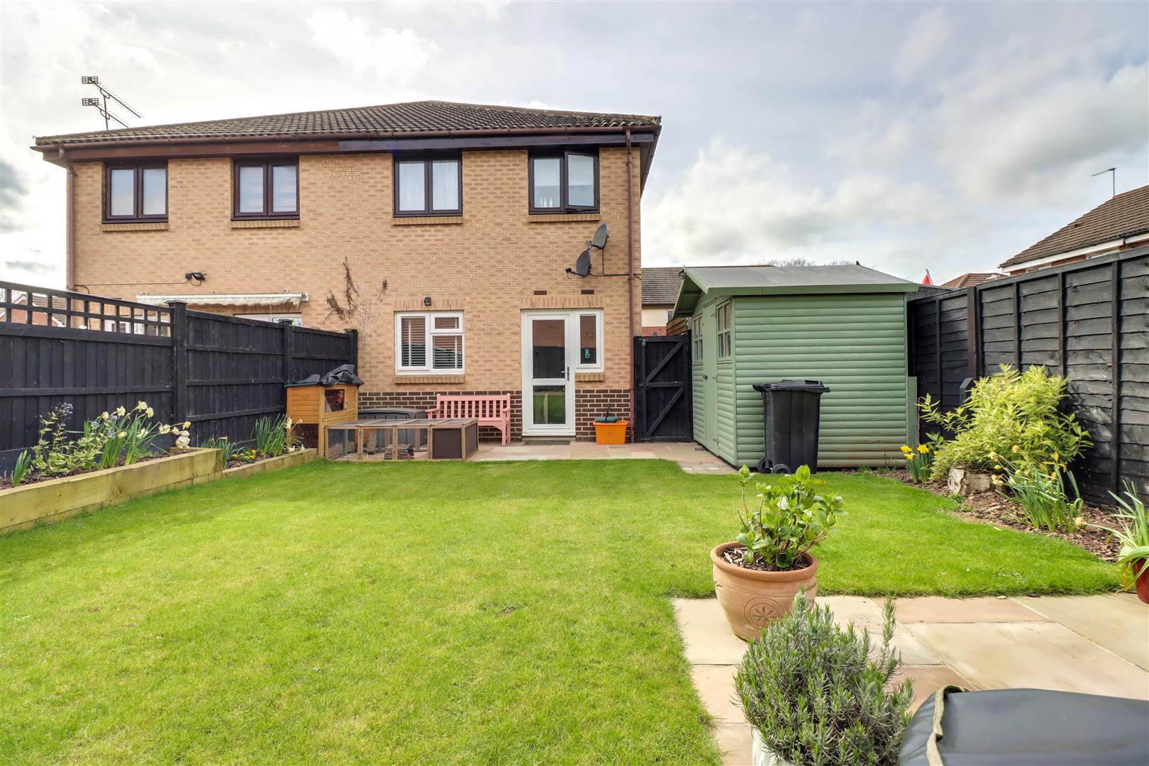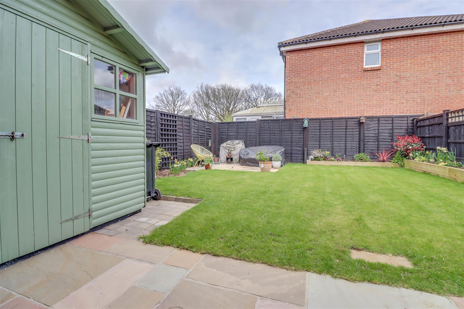 Commencing with paved patio to immediate rear with remainder laid to lawn. Shed. Fencing to side and rear boundaries.