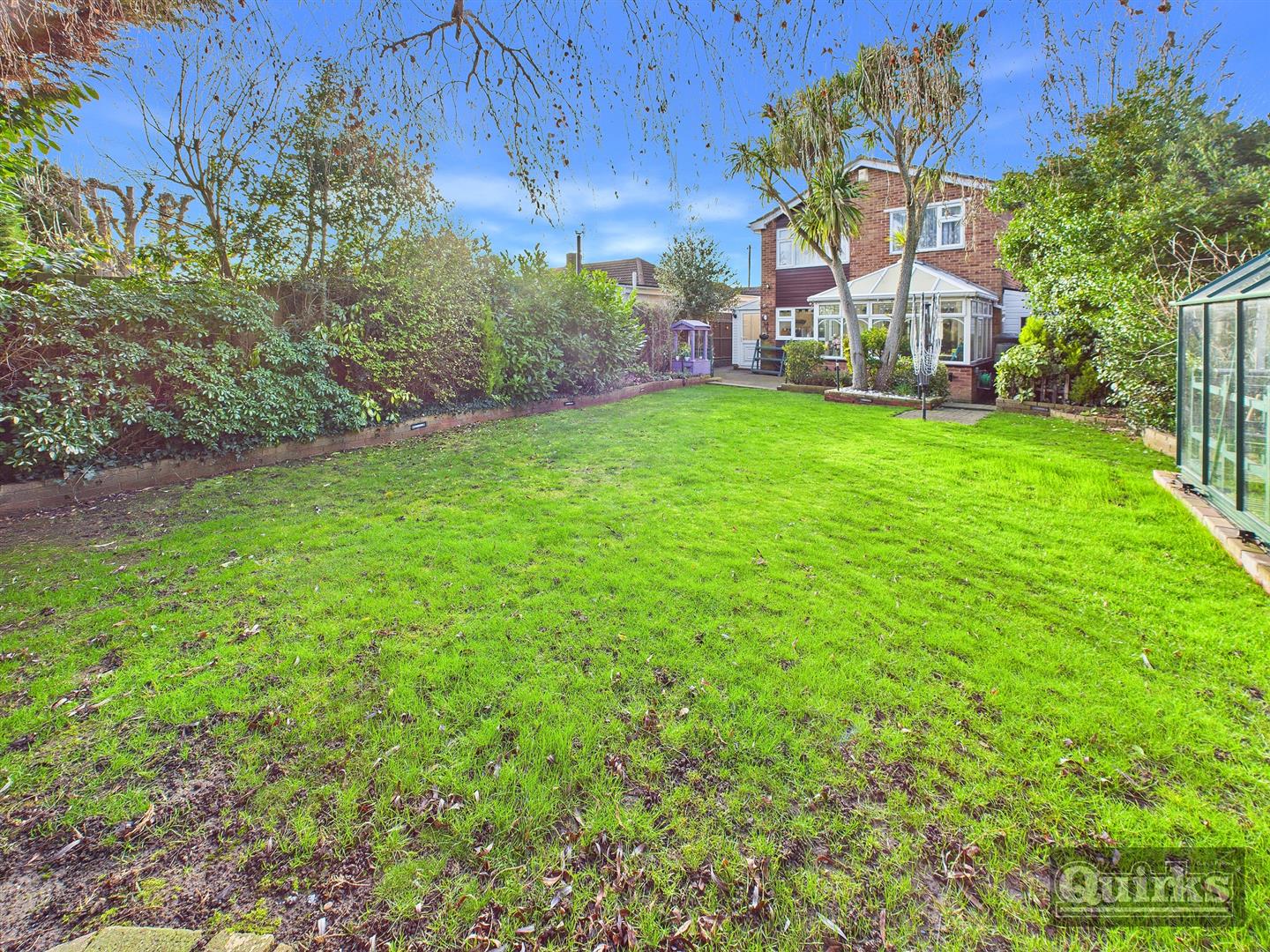 Commencing with block paved patio to immediate rear with remainder laid to lawn with flower and shrubs. fencing to side and rear boundaries. Shed and greenhouse. Access to side.