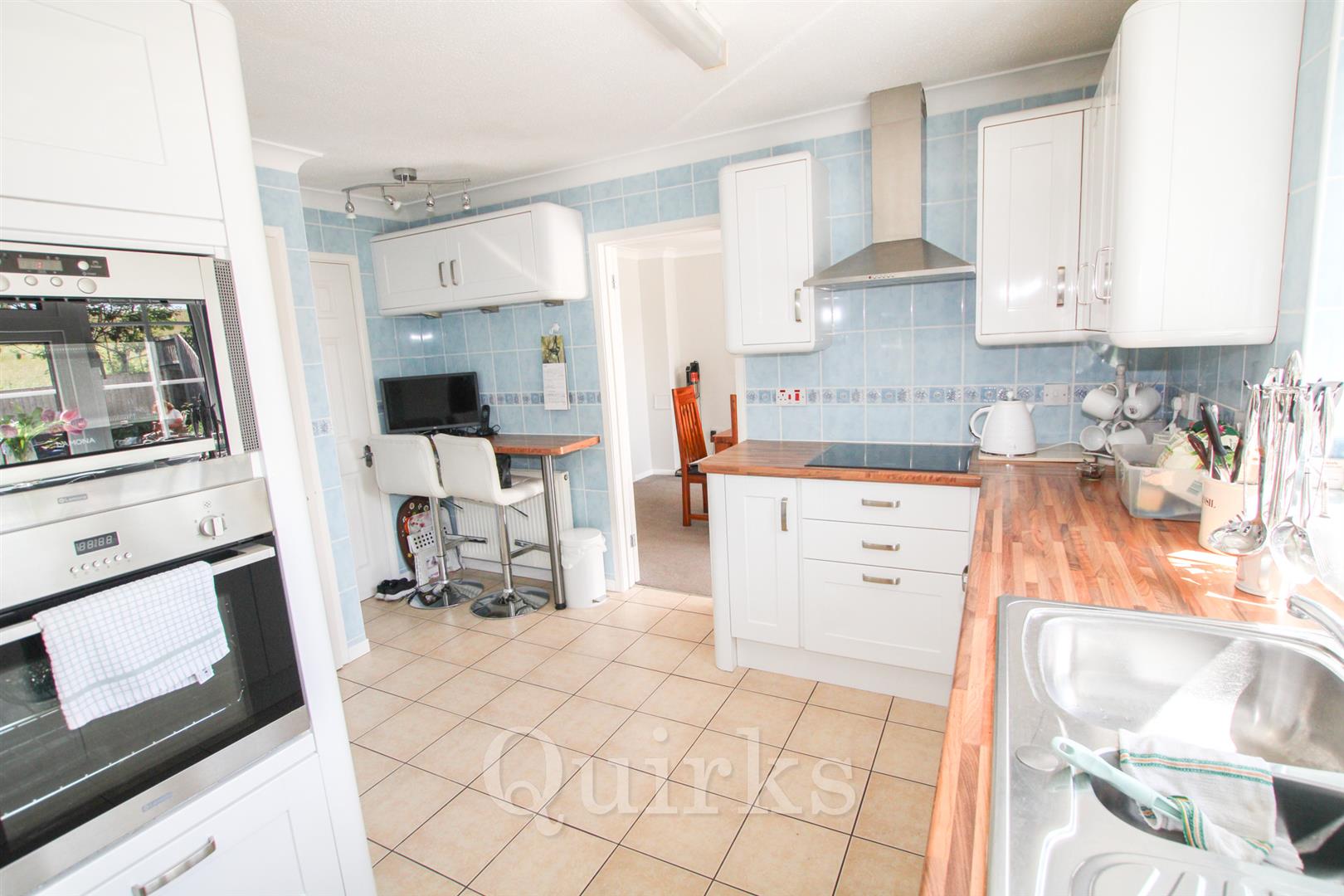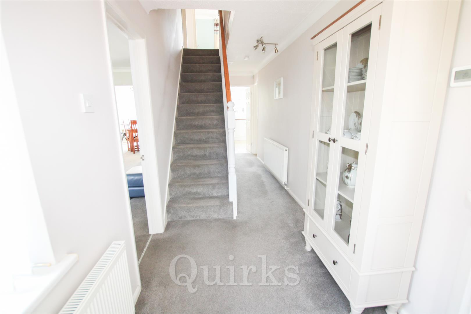 Located just a short walk from Norsey Woods and well-regarded local schools, this beautifully presented four-bedroom detached home offers spacious, family-friendly living in a sought-after Billericay location. The welcoming entrance hall includes useful understair storage and leads to a bright lounge with a bay window, flowing into the dining room with sliding patio doors to the unoverlooked south-facing garden. The modern kitchen features a breakfast bar and integrated appliances—including fridge/freezer, dishwasher, washing machine, and electric hob with extractor—plus a handy storage cupboard and side access. A ground floor WC adds further convenience. Upstairs, there are four bedrooms, including two doubles. The principal bedroom boasts built-in wardrobes and a stylish en-suite. Bedrooms two and four also have built-in wardrobes, with bedroom four currently used as a dressing room. An airing cupboard is located on the landing. The family shower room was formerly a bathroom and could be easily converted back. The garden backs onto open fields, offering privacy and a peaceful setting. The detached garage includes rear door access and an up-and-over door. A large driveway to the front provides off-road parking for 3–4 vehicles. This is a fantastic opportunity to secure a well-maintained home in a prime location near nature, schools, and amenities.