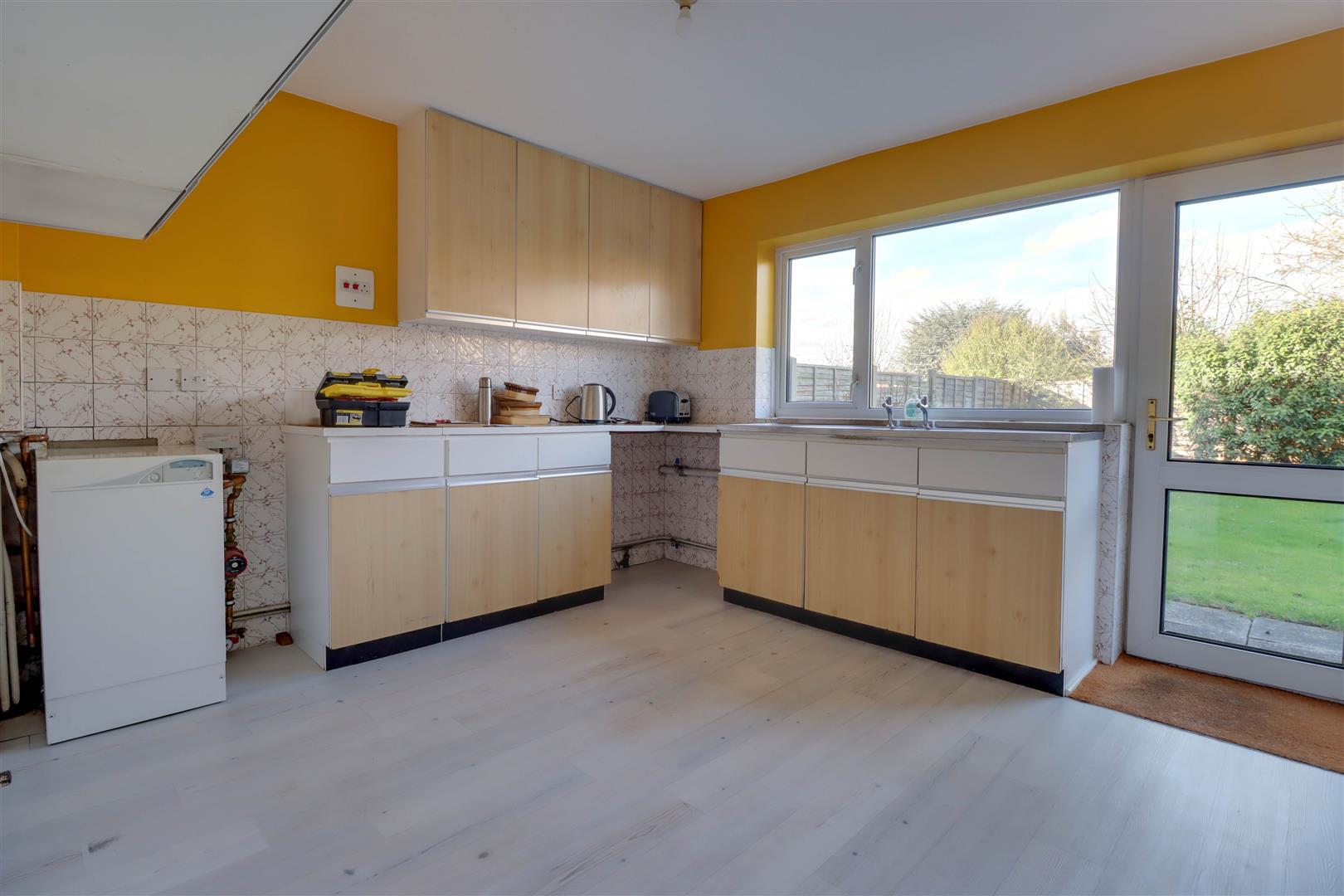 Double glazed window and double glazed door to rear garden. Range of base and wall mounted units providing drawer and cupboard space. Radiator. Gas fired boiler. Space for appliances.