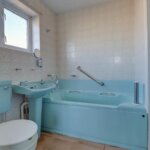 Double glazed opaque window to side. Suite comprising of low level WC, pedestal wash hand basin and panel enclosed bath unit with shower. Airing cupboard with updated cylinder. Extensive tiled surround. Radiator.