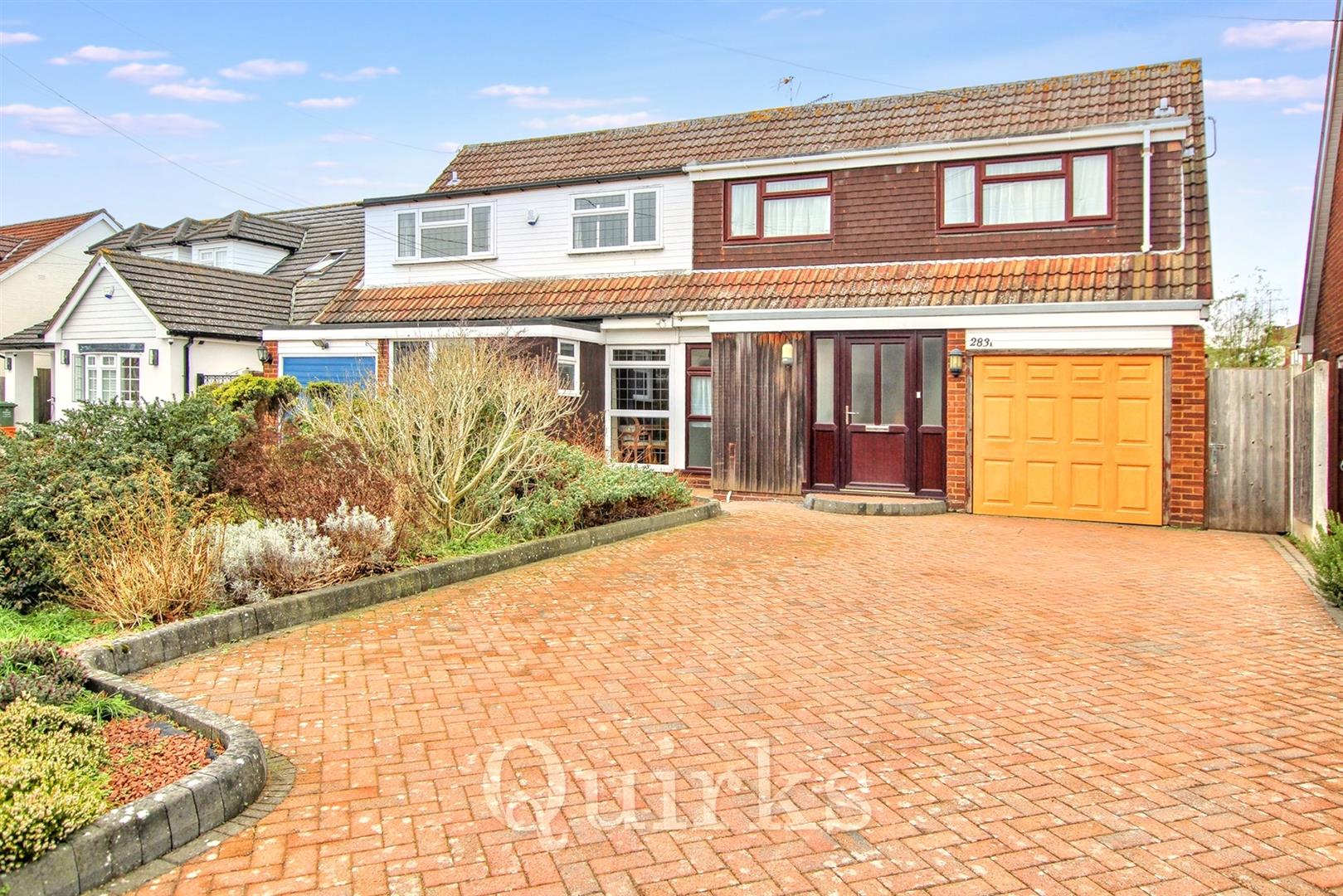 Offered for sale with NO ONWARD CHAIN, is this spacious four bedroom semi-detached family home, situated in a quiet and sought after location, within walking distance to Buttsbury & Mayflower in North Billericay. Originally built in 1968 by T.W Stanford & Sons, this property has been in the same family ownership since and offers a great opportunity for families to move into this extremely popular area, near to Lake Meadows Park, Stock Brook Manor Country Club, convenience shops and highly regarded Schools. Set back from the road with an extensive block paved driveway, there is comfortably space for three cars, the garage is integral and has an electric up & over door, this extensive storage space gives potential to create further accommodation if required (subject to building regulation approval). The entrance hallway is an excellent size, leading to the study / dining room and living room, which has double glazed French doors, leading to the West facing rear garden. The kitchen / breakfast room, enjoys a dual aspect with side door access, a range of wall and base level units, sink/drainer, free standing oven to remain and spaces for further appliances. To the first floor are four double bedrooms, bedroom one overlooks the rear garden with fitted wardrobes. The modern family bathroom is fully tiled, with both a bath and separate shower cubicle, chrome heated towel rail, W.C and pedestal wash hand basin. Externally, the rear garden measures approximately 35ft in depth, with a paved patio, the rest laid to lawn with flower & shrub beds, side gate access and greenhouse to remain.