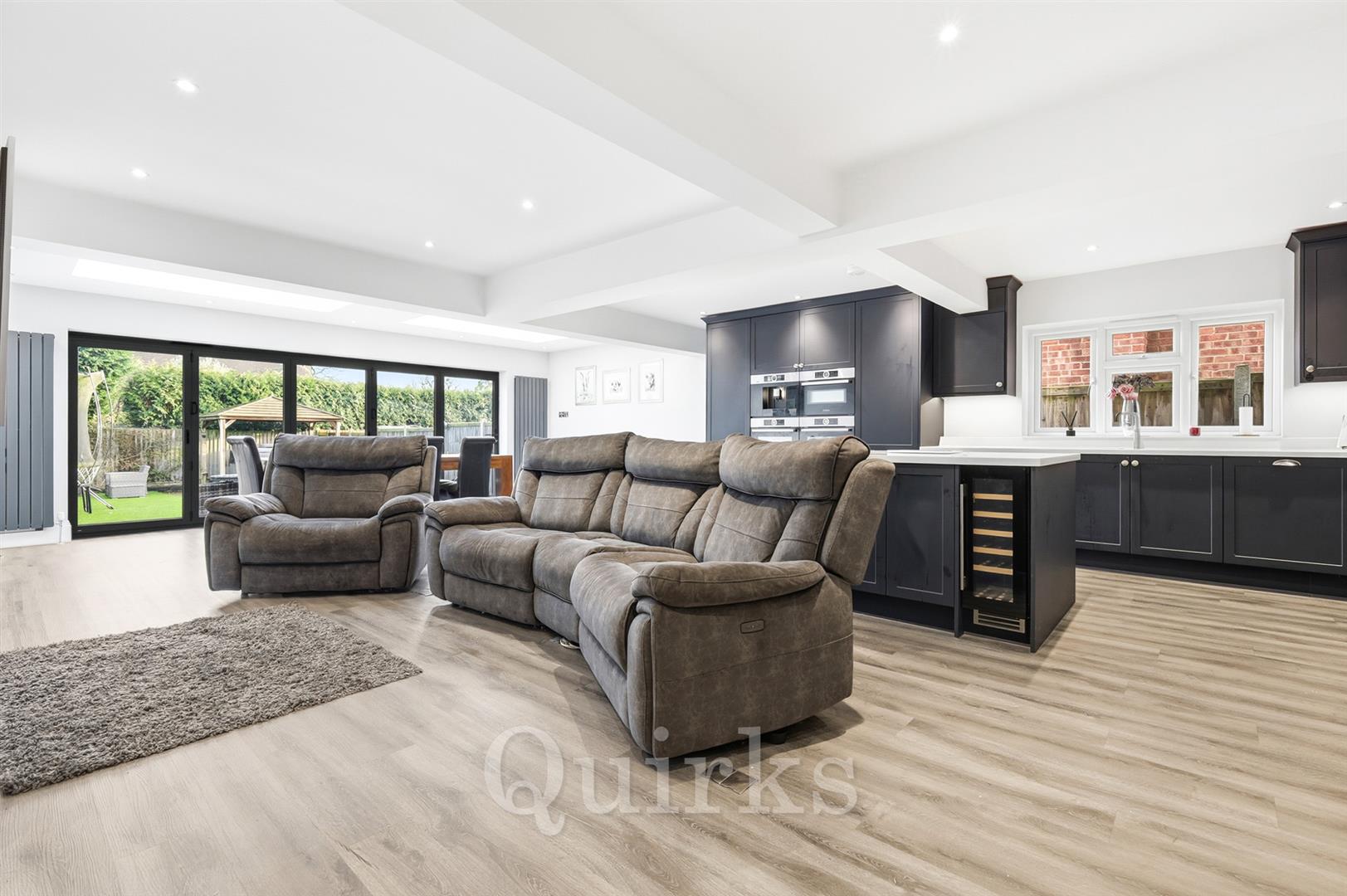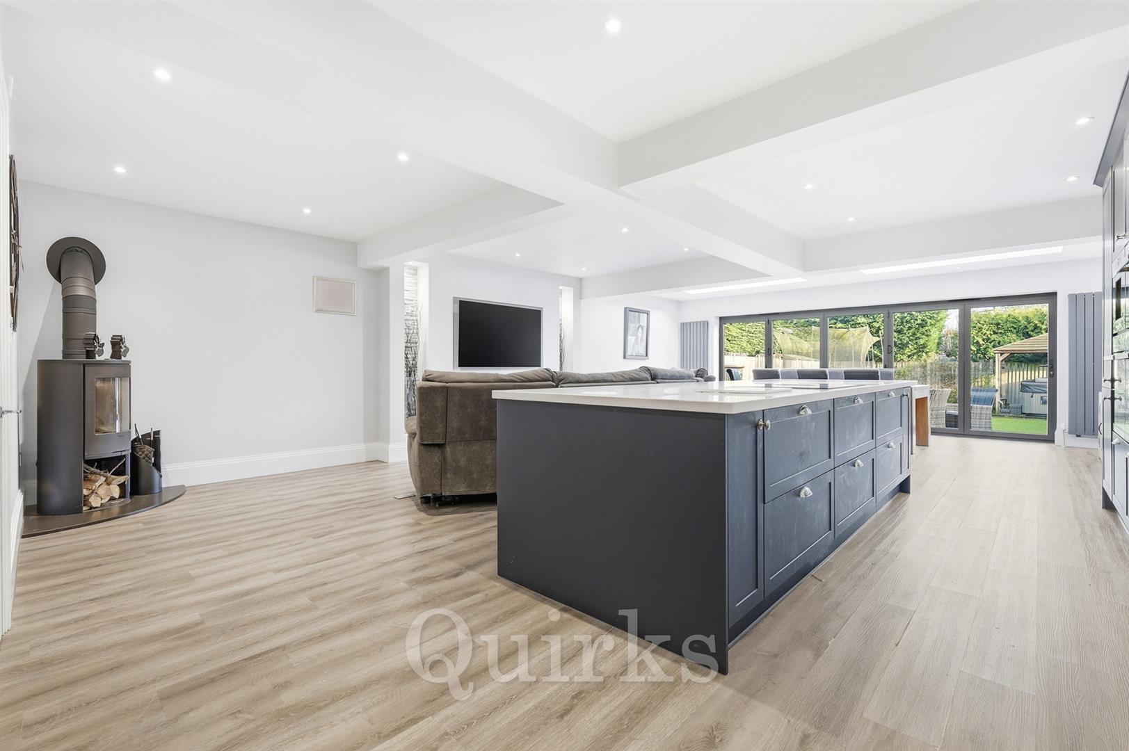 A quiet location in North Billericay, extensively renovated throughout, stunning open plan kitchen / living space, FIVE BEDROOMS, walk-in wardrobe, en-suite, balcony / sun terrace, solar panels & air conditioning, walking distance of Buttsbury & Mayflower schools.