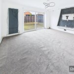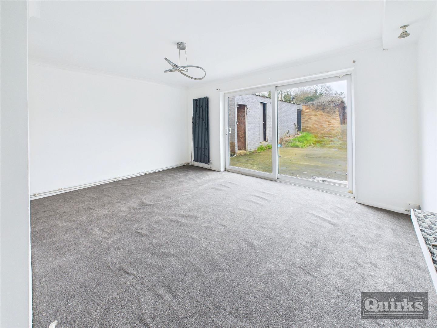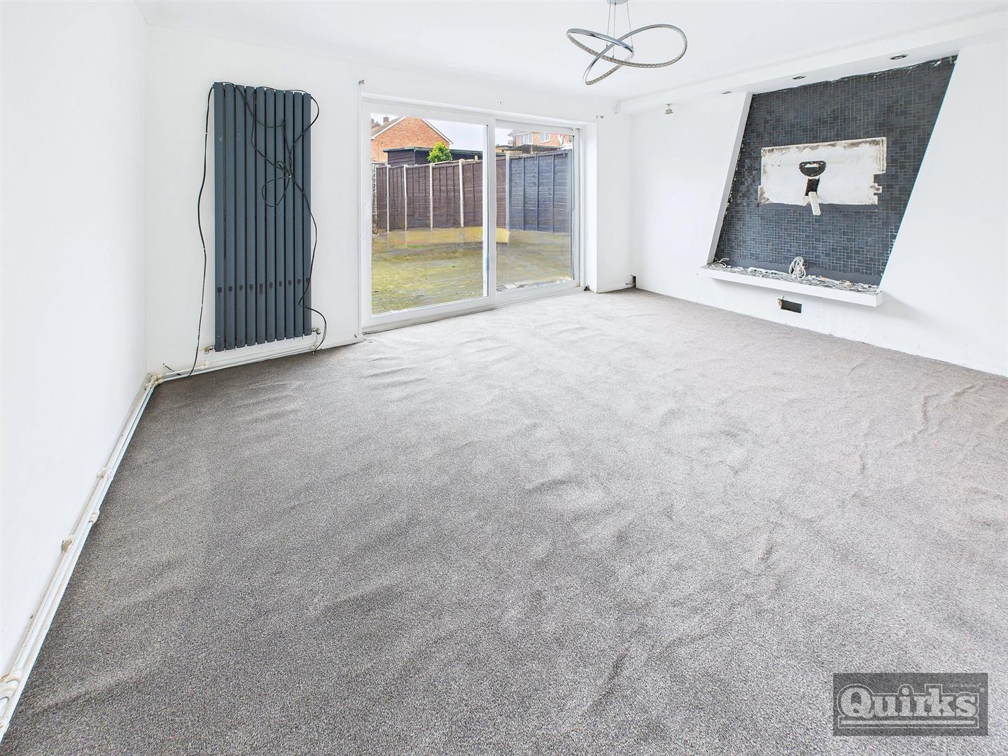 Double glazed sliding patio doors to rear garden, vertical designer radiator, media wall with some wiring