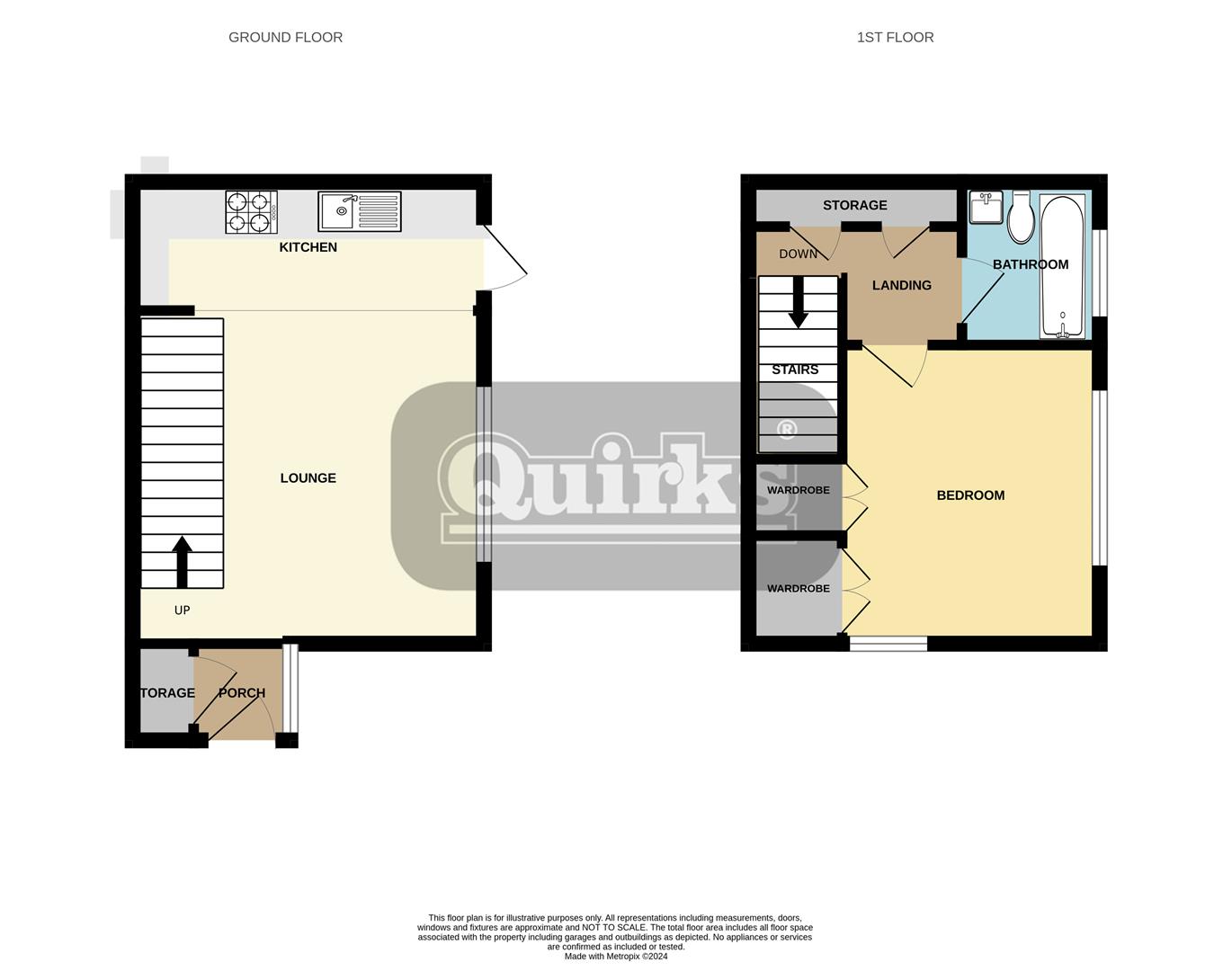 Nestled in a quiet spot within the sought-after Arundel Heights Development, this beautifully presented one-bedroom semi-detached house is a perfect choice for first-time buyers. The property welcomes you with an entrance porch featuring a convenient storage cupboard. Step inside to find a bright and spacious lounge, complete with a cozy understairs seating area, ample storage, and a charming bay window offering views of the garden. To the rear, the modern kitchen boasts a stylish range of units, a gas hob, an electric oven, and space for a fridge, freezer, and washing machine. A single door from the kitchen opens directly into the garden, enhancing the indoor-outdoor flow. Upstairs, the landing includes built-in storage and leads to a bathroom finished to a high standard, fully tiled and equipped with a contemporary white suite, including a bath with an overhead electric shower. The double bedroom enjoys a dual-aspect design, filling the space with natural light, and benefits from additional built-in storage. Situated within walking distance of local shops, a park, and a country club, this delightful home offers a perfect blend of convenience and tranquility.