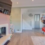 Access via double glazed door and window to side. Double glazed bay window to front and additional double glazed window to side. Raised fireplace (untested). 2 radiators. Under stairs cupboard. Laminate floor extending to: