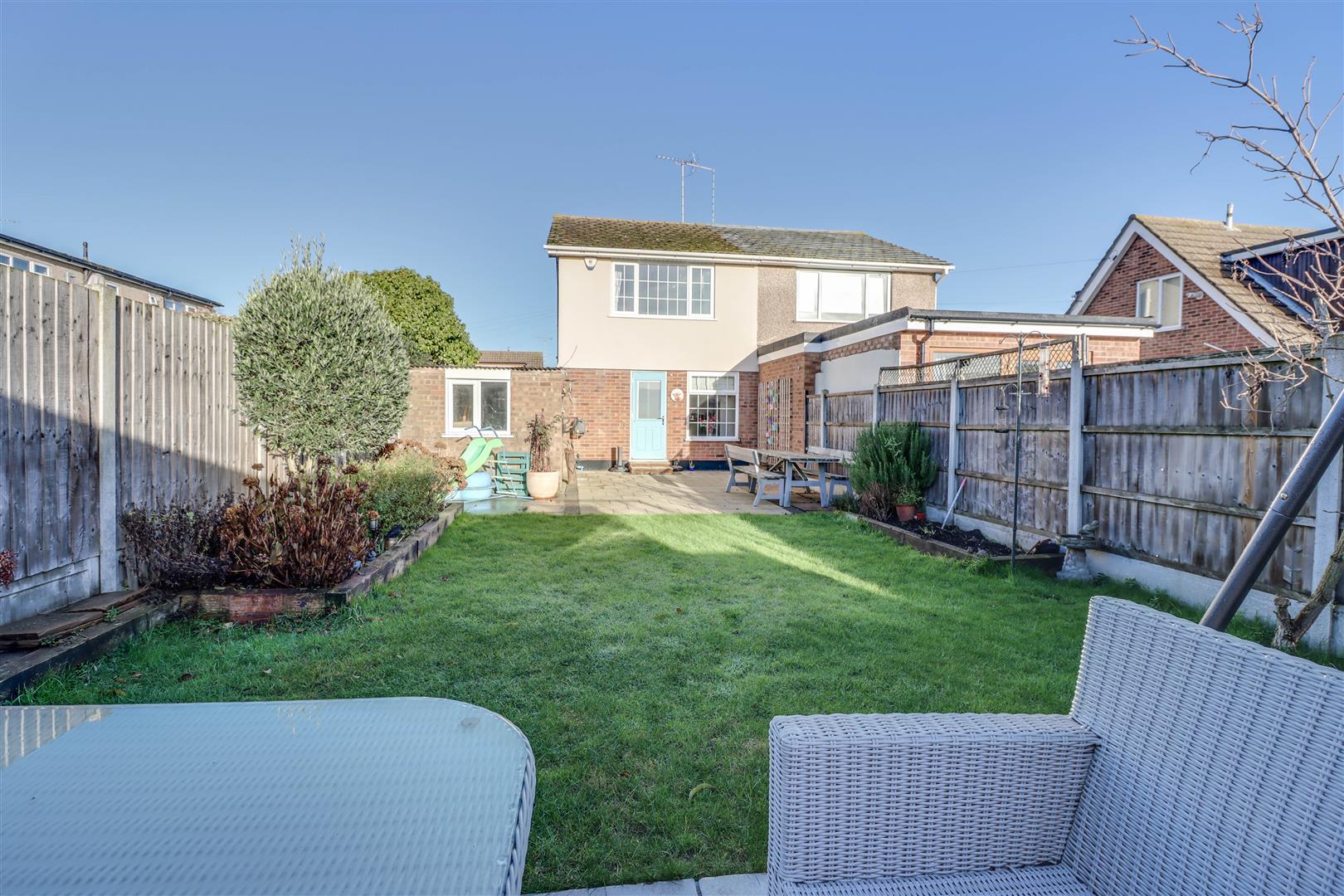 The property benefits from a southerly garden with 2 paved patio areas and the remainder laid to lawn with fencing to boundaries and outside tap. Courtesy door to: