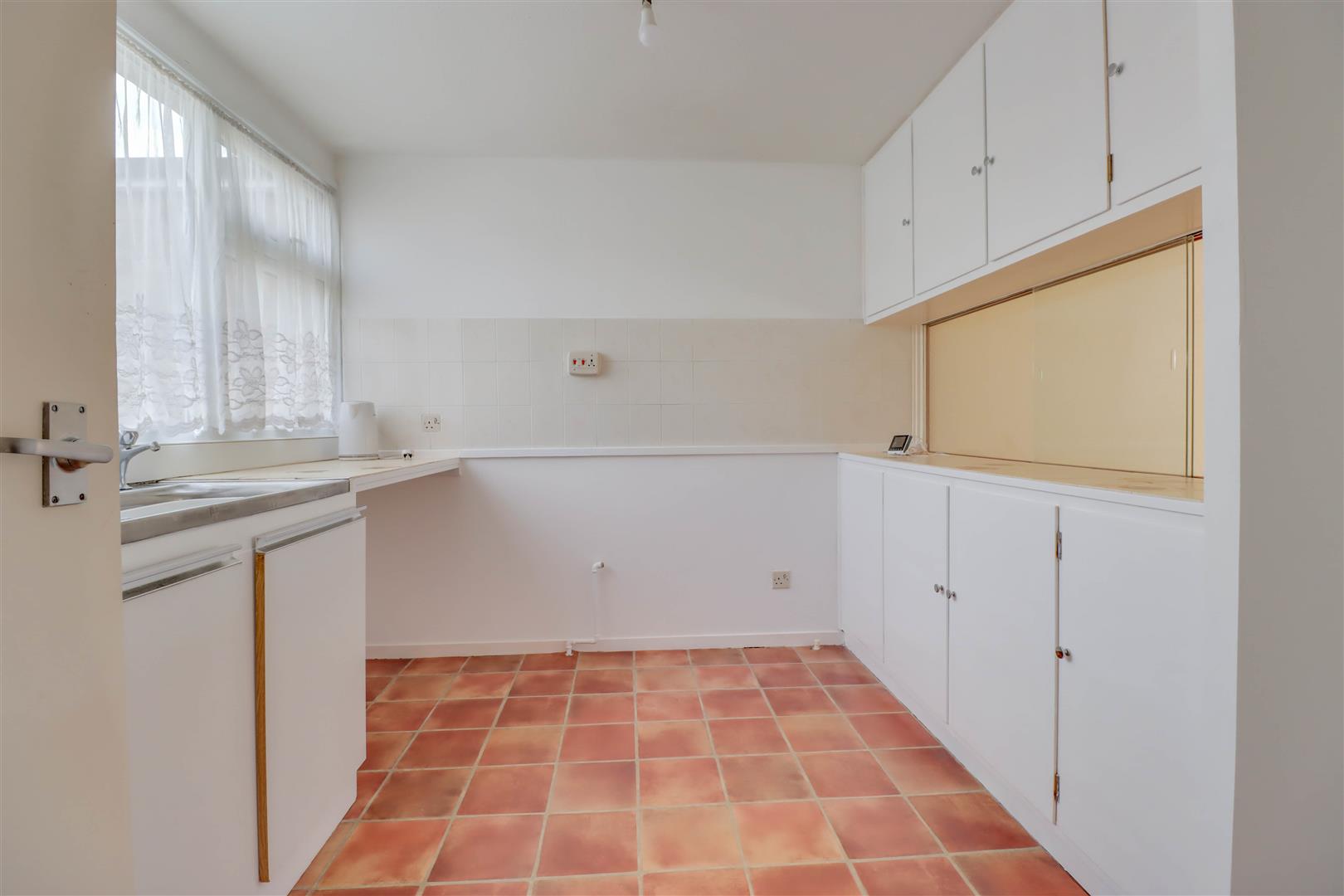 Double glazed window to front. Range of base and wall mounted units providing drawer and cupboard space with work top surface extending to incorporate inset sink unit with cupboard beneath. Space for appliances.
