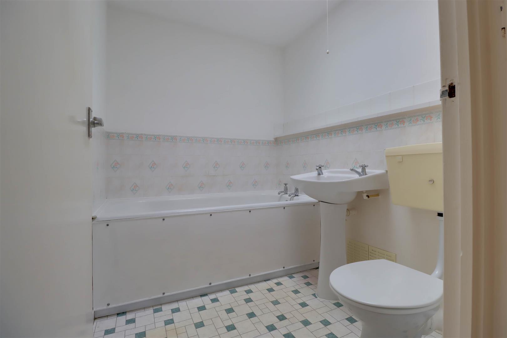 Double glazed opaque window to front. Suite comprising of low level WC and wash hand basin. Tiled surround.