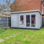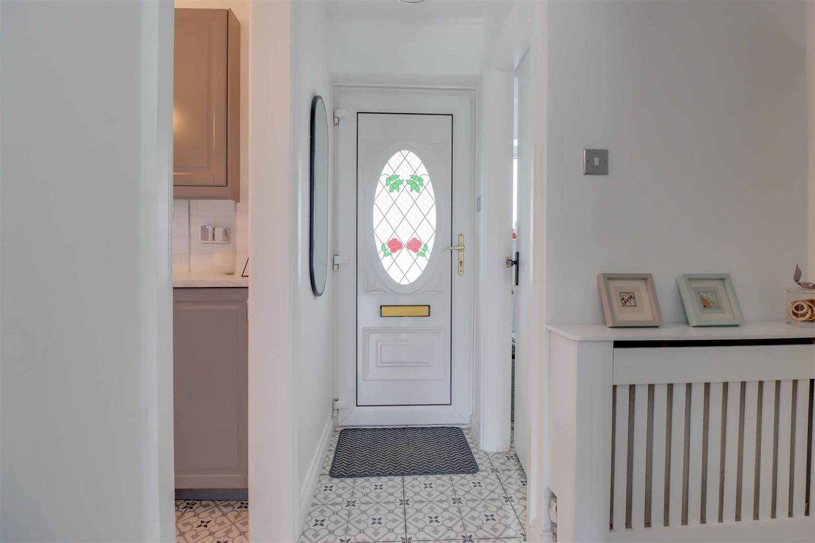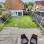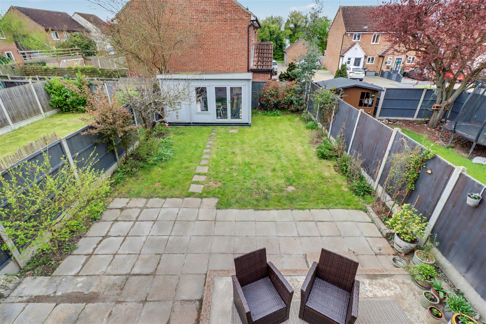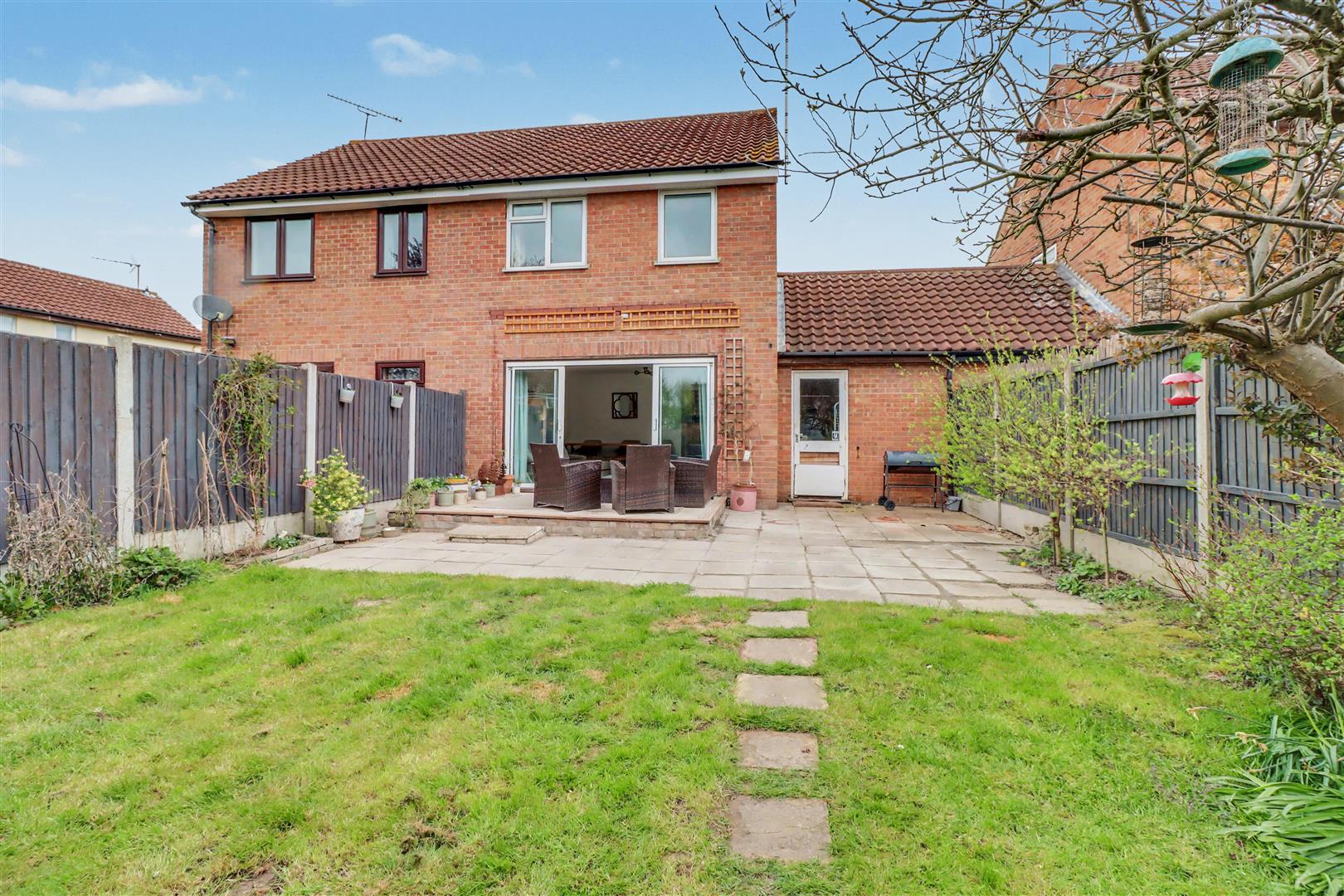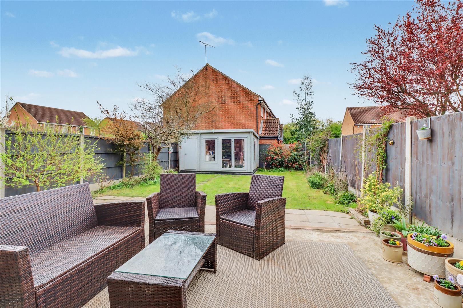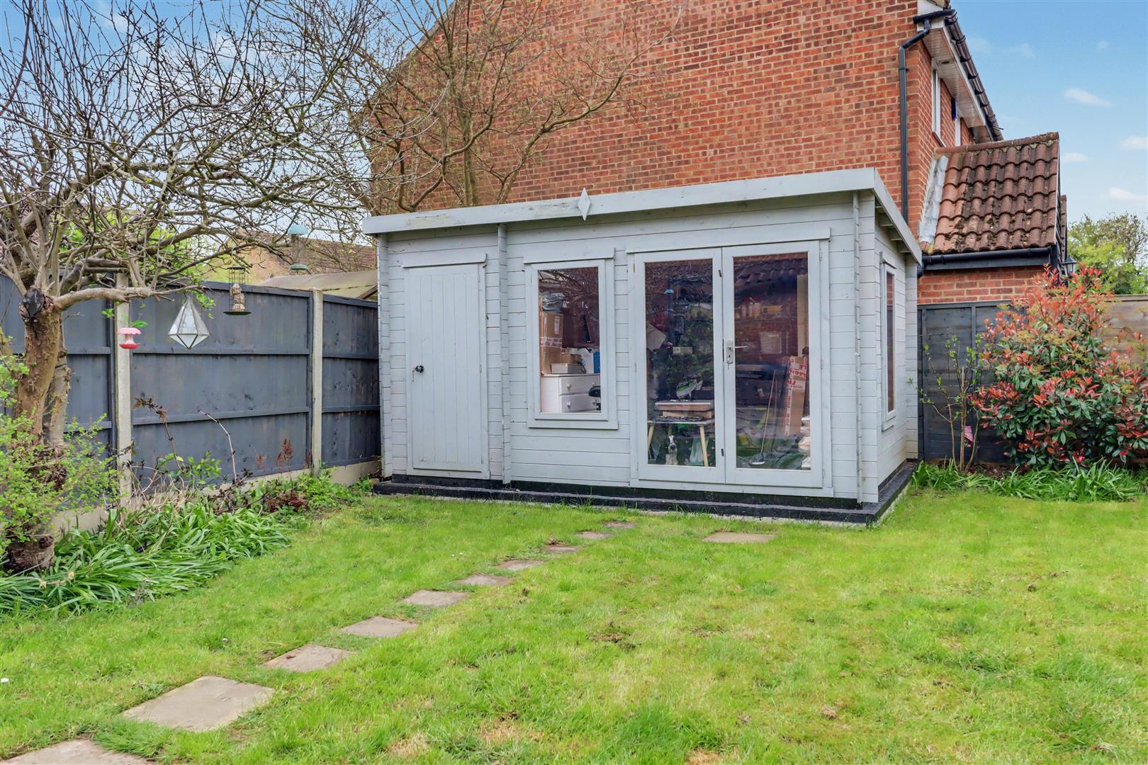 Commencing with paved patio to immediate rear with remainder laid to lawn. Fencing to side and rear boundaries. Shed. Courtesy door to: