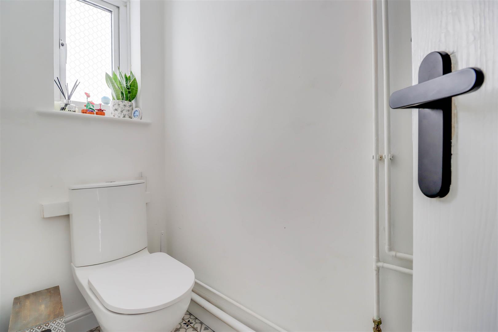 Double glazed opaque window to front. Suite comprising of low level WC and wash hand basin. Tiled splashback. Radiator. Access to small loft.