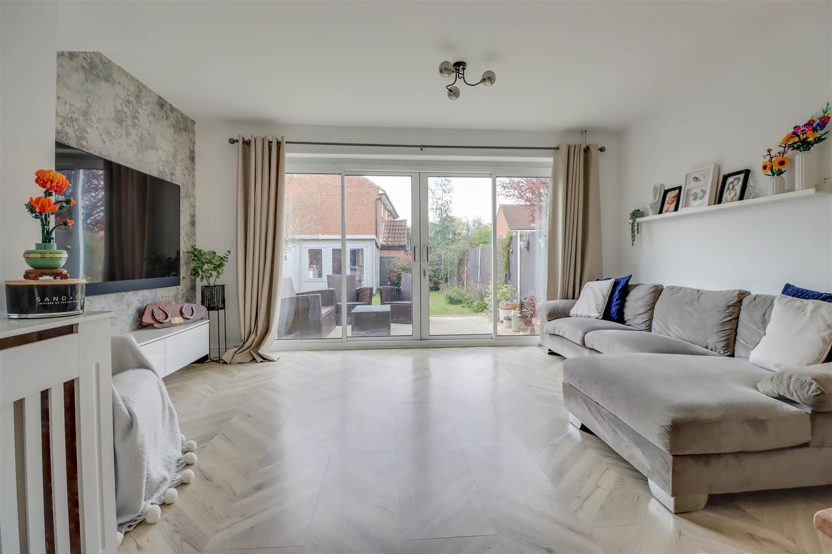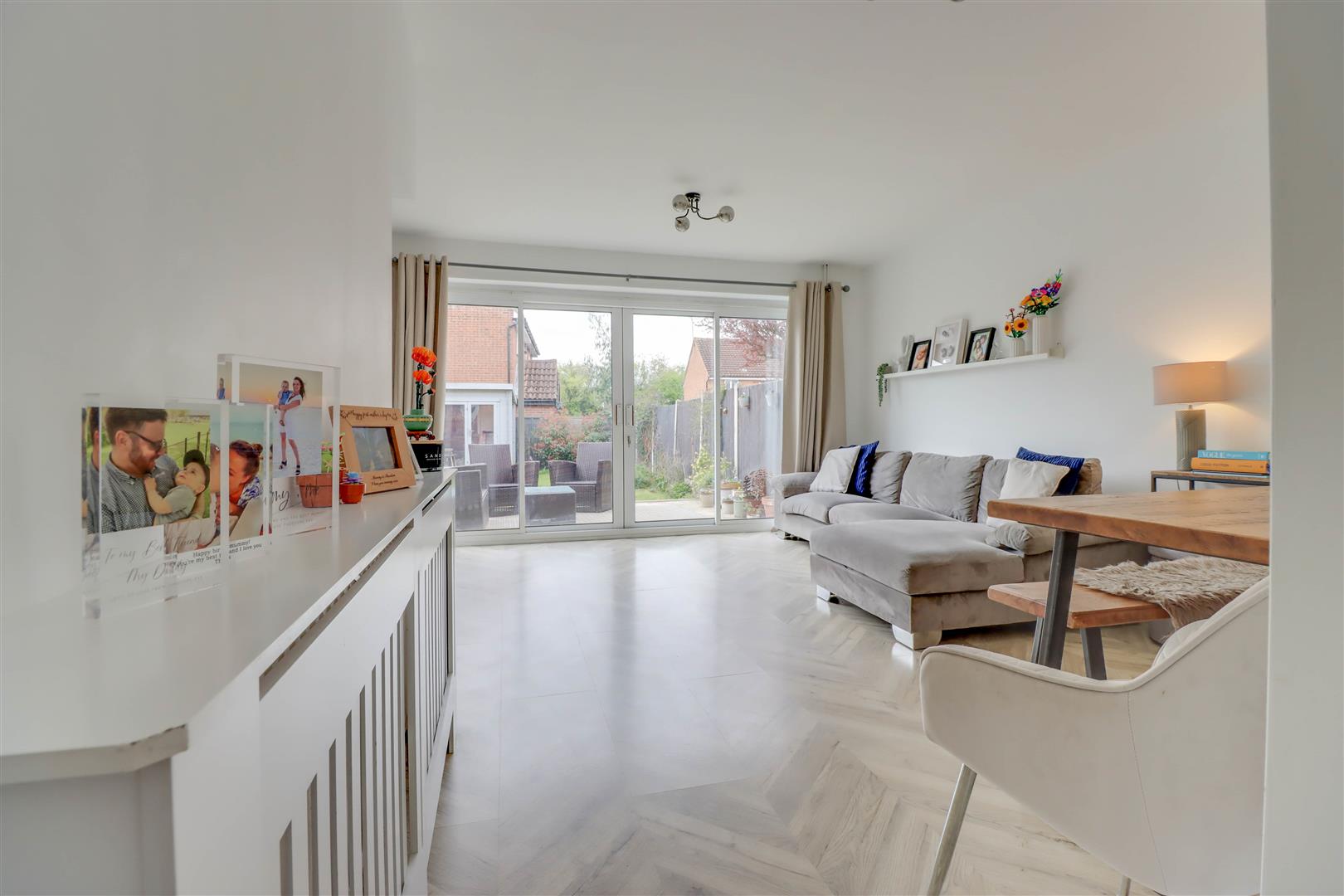 Double glazed patio doors to rear garden. Two radiators. Under stairs cupboard. Laminate finish to floor.