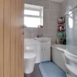 Double glazed window to front, radiator, low flush wc and wash hand basin, wood effect laminate floor covering