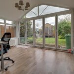 Constructed in Atrium style with vaulted ceiling and double glazed Bi fold doors t rear garden, double glazed window to flank, wood effect laminate floor covering, radiator