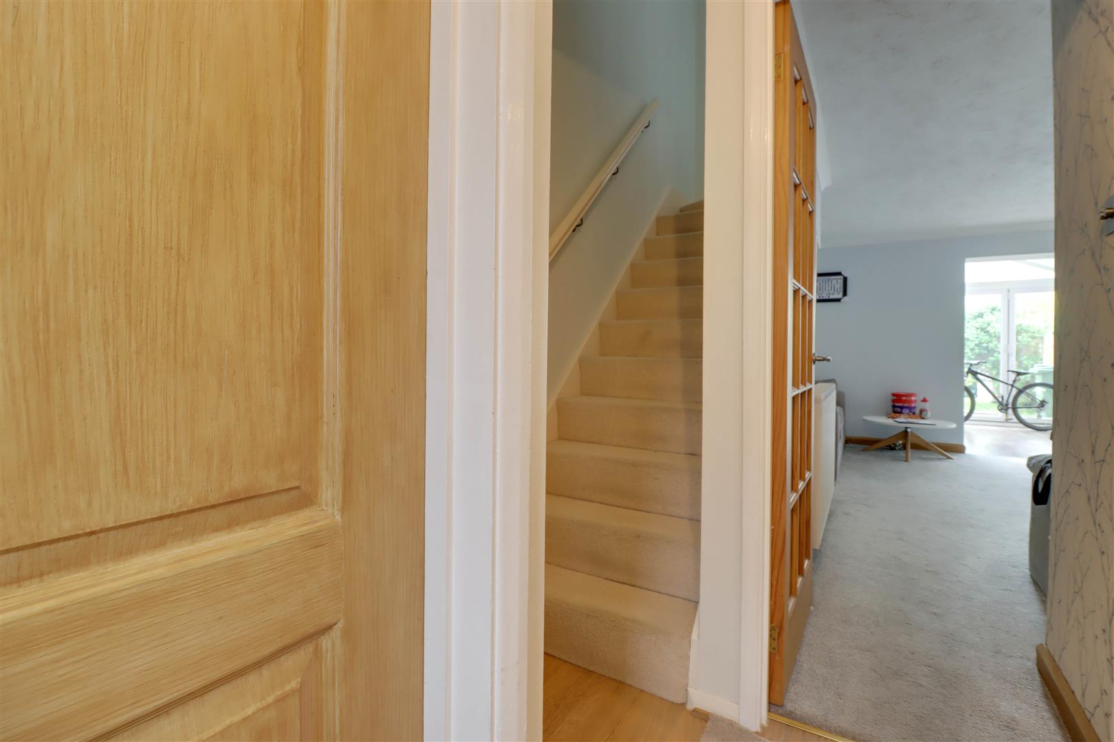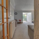 Part double glazed street door to hall, doors to accommodation, stairs to first floor, radiator, wood effect laminate floor covering