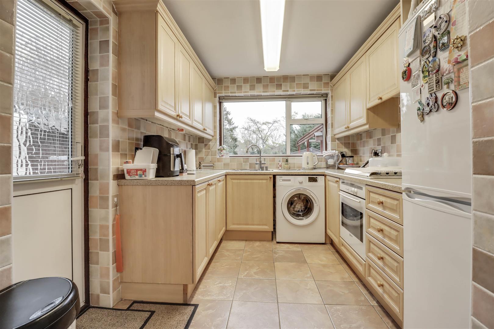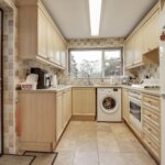 Double glazed window to rear. Double glazed door to side. Range of base and wall mounted units providing drawer and cupboard space with work top surface extending to incorporate inset sink unit with cupboard beneath. Built in oven, hob and extractor fan. Space for appliances. Tiling to floor and surround.