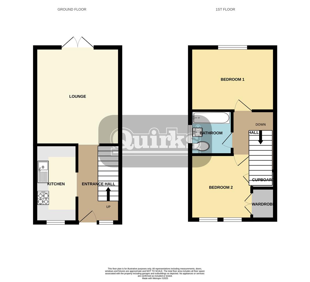 This two-bedroom semi-detached house is situated in a peaceful cul-de-sac within the Queens Park Development and is being offered with no onward chain. Upon entering, you'll find a hallway that leads to the kitchen on the left, which is equipped with a built-in oven and hob, along with space for a fridge/freezer and washing machine. To the rear of the property is a generously sized lounge/diner, complete with French doors that open to the garden. Upstairs, there are two double bedrooms, with the second bedroom featuring built-in storage. The modern bathroom offers a three-piece white suite, including a shower over the bath. Externally, the secluded garden faces northwest, providing a private outdoor space. The property also benefits from a separate garage and a driveway with space for two cars. Rutherford Close is conveniently located near local schools, parks, and convenience shops, with Billericay High Street just a short drive away.