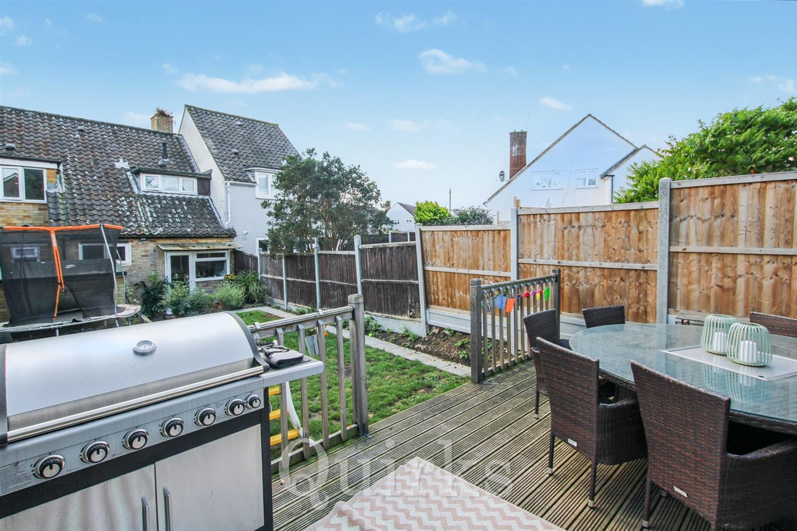 A spacious family home in the popular Sunnymede area, with block paved driveway, providing off road parking for two cars, modern kitchen with garden access, integrated dishwasher, oven and 4 ring gas hob, stainless steel extractor hood, butlet sink and space for fridge / freezer. The living room is to the front aspect, with ample room for sofas and a dining table., the ground floor also offers a large hallway and ground floor W.C. The first floor landing leads to a modern family bathroom, with built-in airing cupboard, paneled bath with shower above, heated towel rail, vanity unit wash hand basin and low level W.C. There are two sizeable double bedrooms and third single bedroom with built-in storage. Externally the rear garden measures an impressive 55ft in depth, with side gate access, storage shed, paved patio and raised lawn, with extensive decking area to the rear boundary, creating an excellent outdoor entertaining space. This property is well suited for families, being within walking distance of schools, convenience shops, nearby bus route and Billericay Mainline Station.