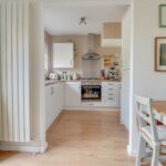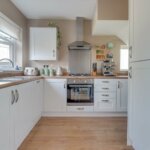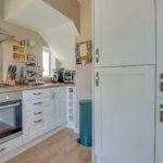 Double glazed windows to rear and sides. Range of base and wall mounted units providing drawer and cupboard space with work top surface extending to incorporate inset sink unit with cupboard beneath. Integrated fridge freezer, integrated dishwasher and washer/dryer. Built in oven, hob and extractor fan above.